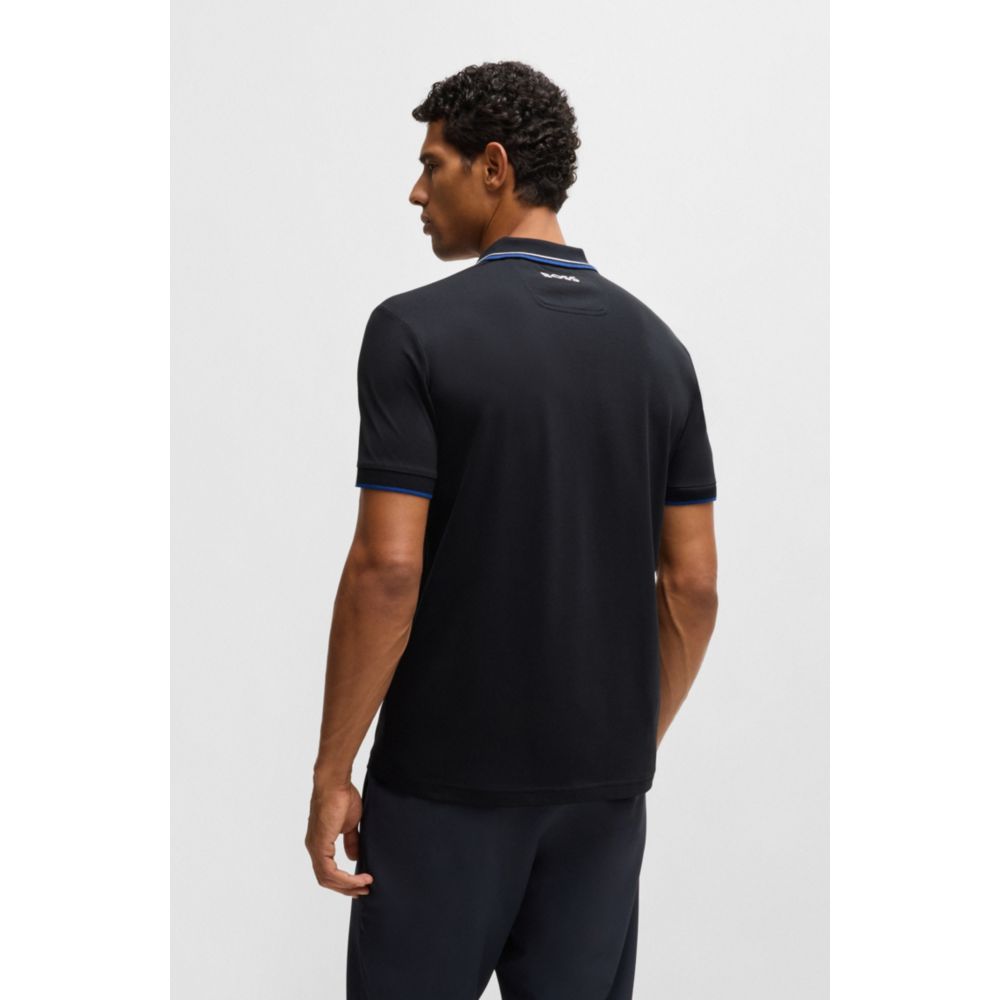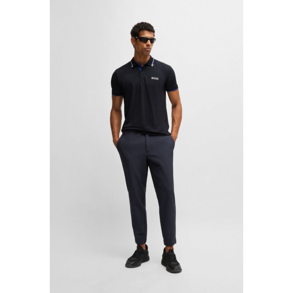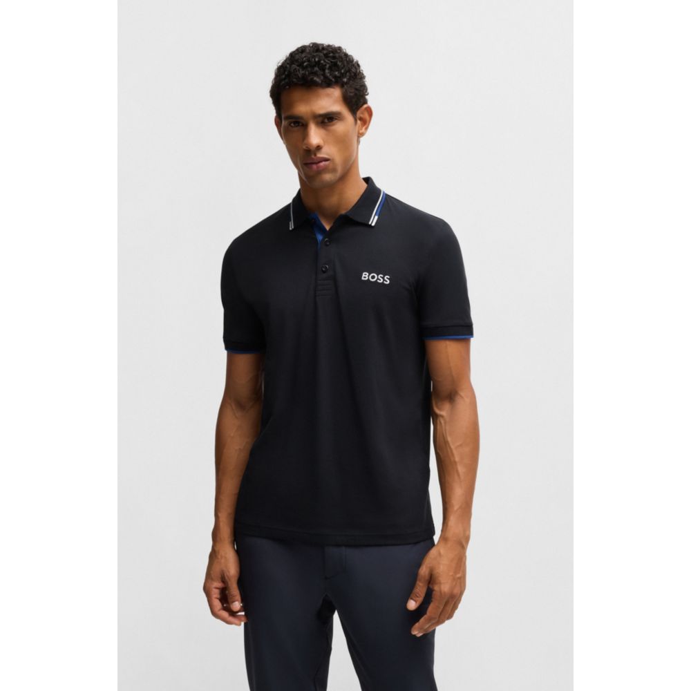 Отличительная рубашка поло, скроенная по стандартному крою, от BOSS Menswear. Эта рубашка поло с короткими рукавами, украшенная контрастным брендингом на левой стороне груди и на шее сзади, выполнена из ткани с S.Café и эластичной для повседневного комфорта. 3D-полоски добавляют спортивный штрих на воротнике и манжетах. Ткань S.Café изготовлена ​​из кофейной гущи, преобразованной с помощью запатентованного процесса в специальную пряжу. Эта ткань обеспечивает исключительный комфорт при ношении в сочетании с постоянными преимуществами, включая быстрое высыхание и контроль запаха.