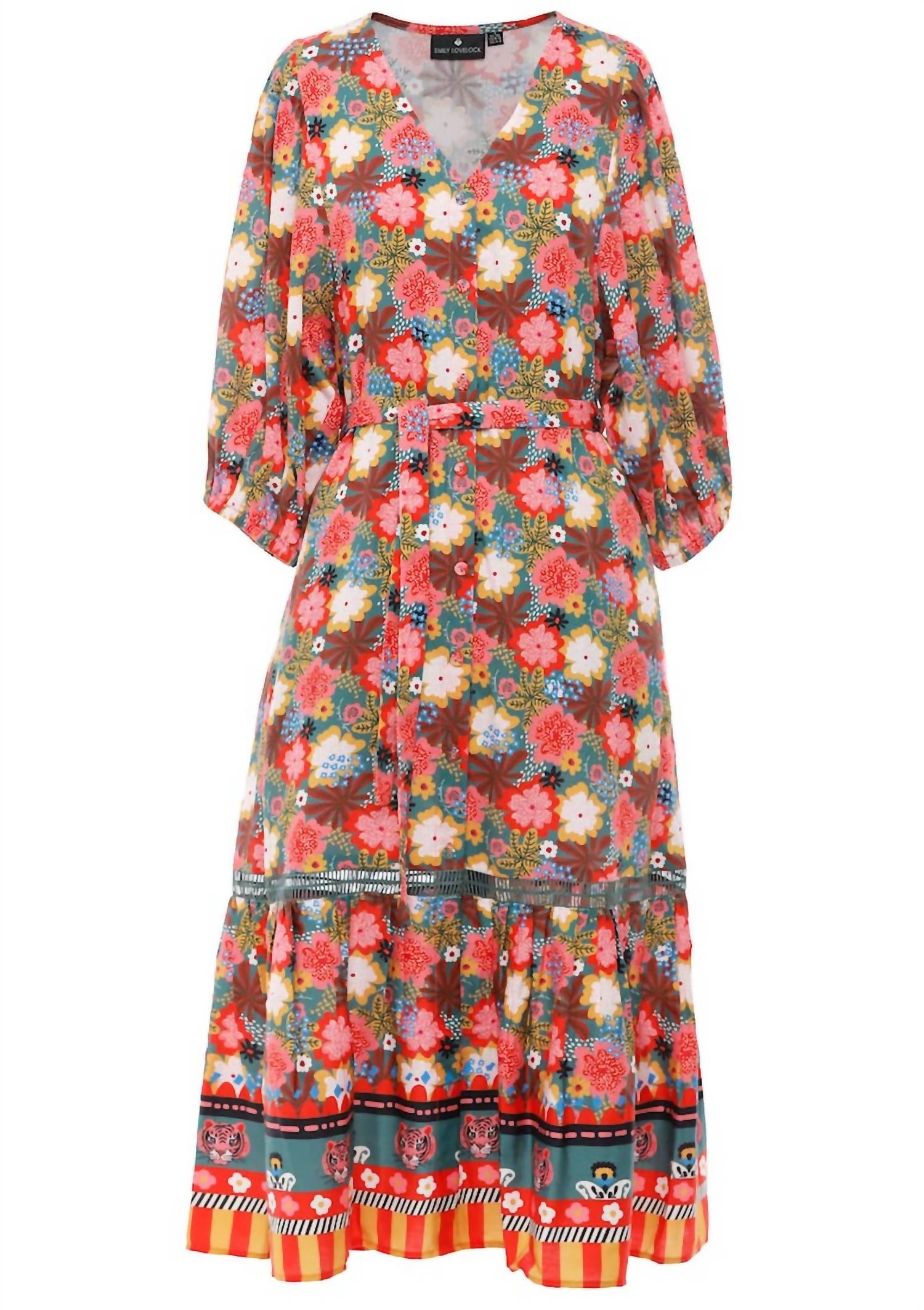 Платье-миди Sophie Tiger Print в розовом цвете Multi EMILY LOVELOCK