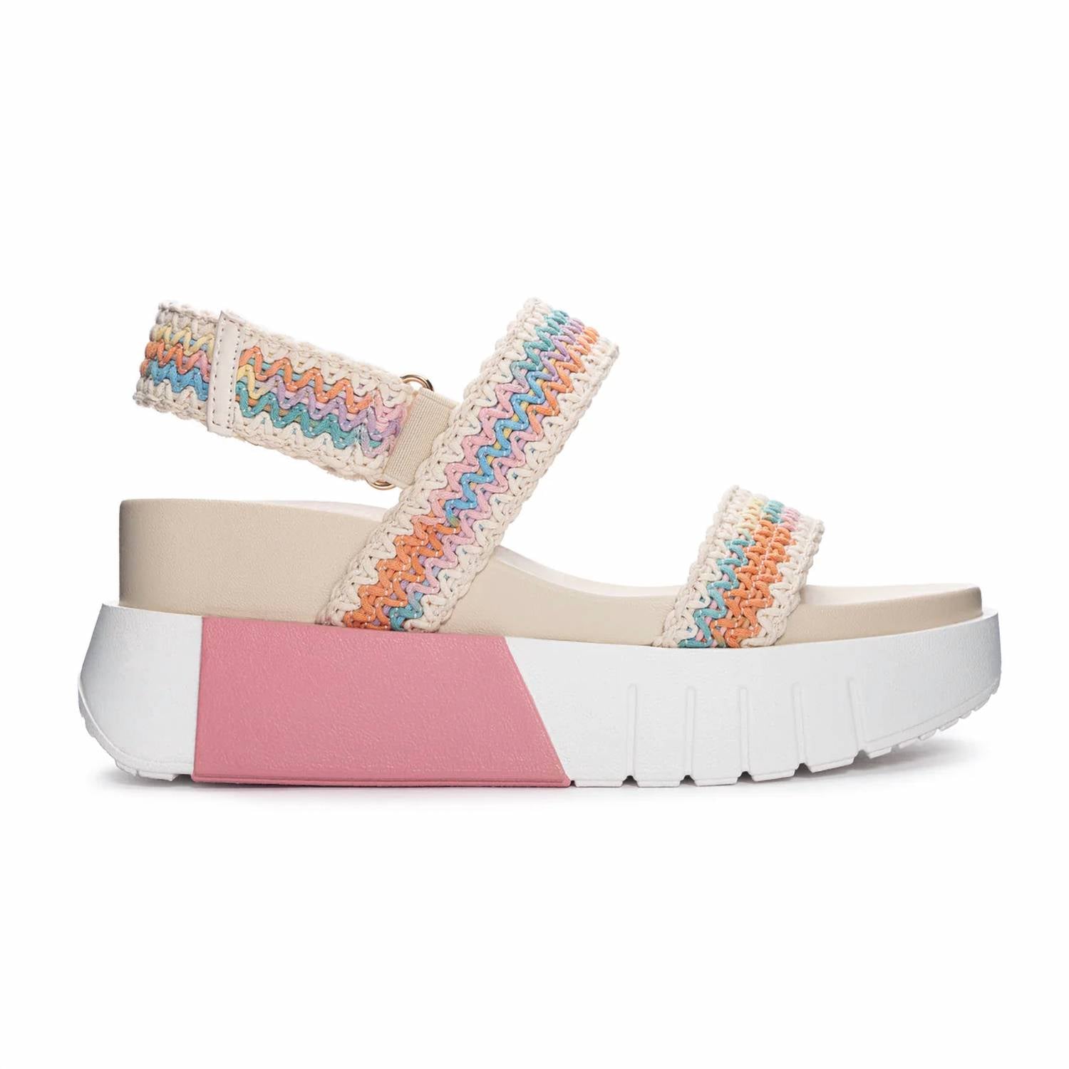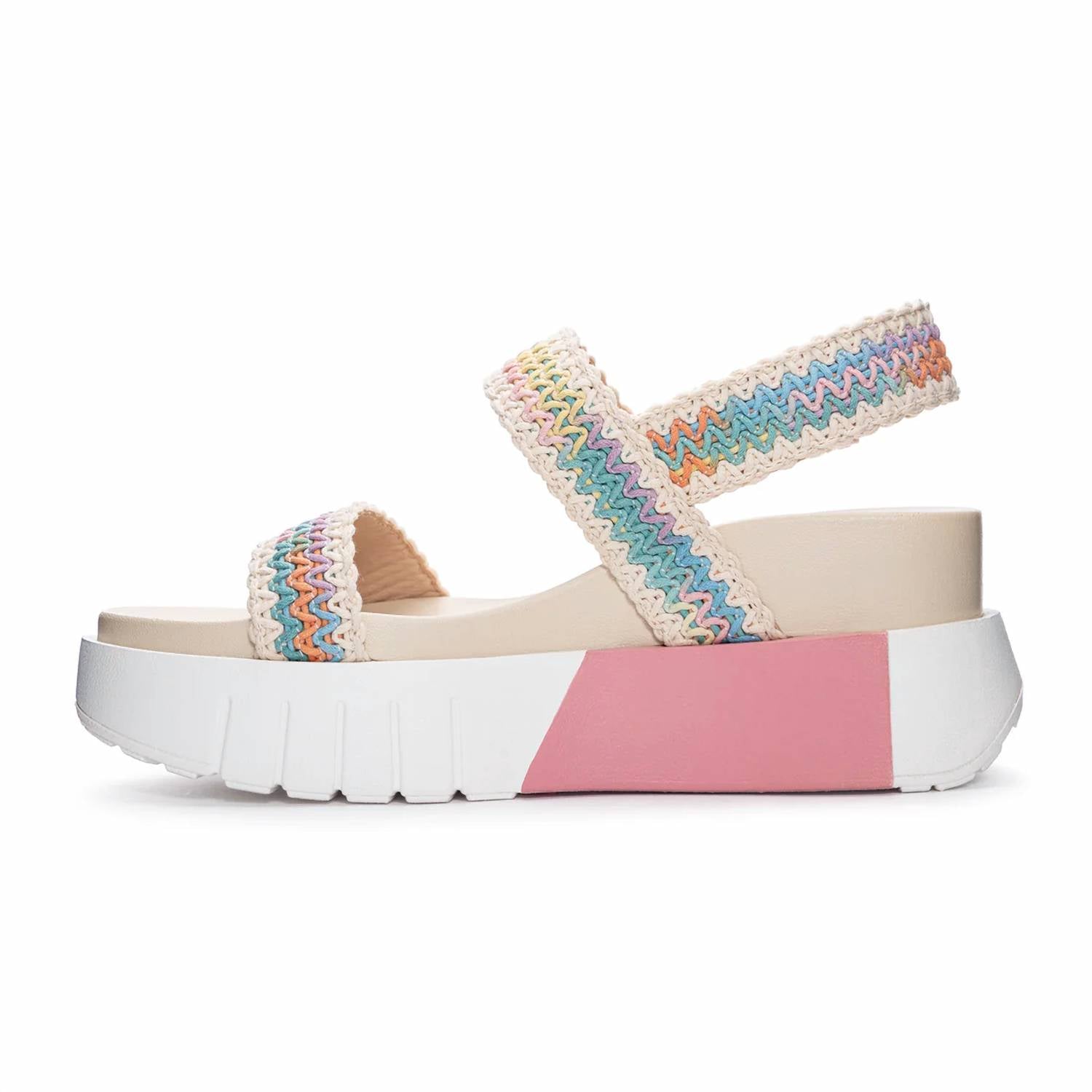 Выйдите на стильный уровень. Идеальное сочетание универсальности и фанка. Изготовлены из смеси ткани и искусственных материалов. Поразительный каблук-танкетка высотой 3 дюйма дополнен платформой высотой 1,75 дюйма. Яркий розовый цвет Multi. Радужная пастельная строчка переплетается с уютными вязаными ремешками босоножек с открытой пяткой, установленных поверх подошвы с цветными блоками на платформе. Дизайн с открытым носком без труда улучшит ваш летний гардероб.