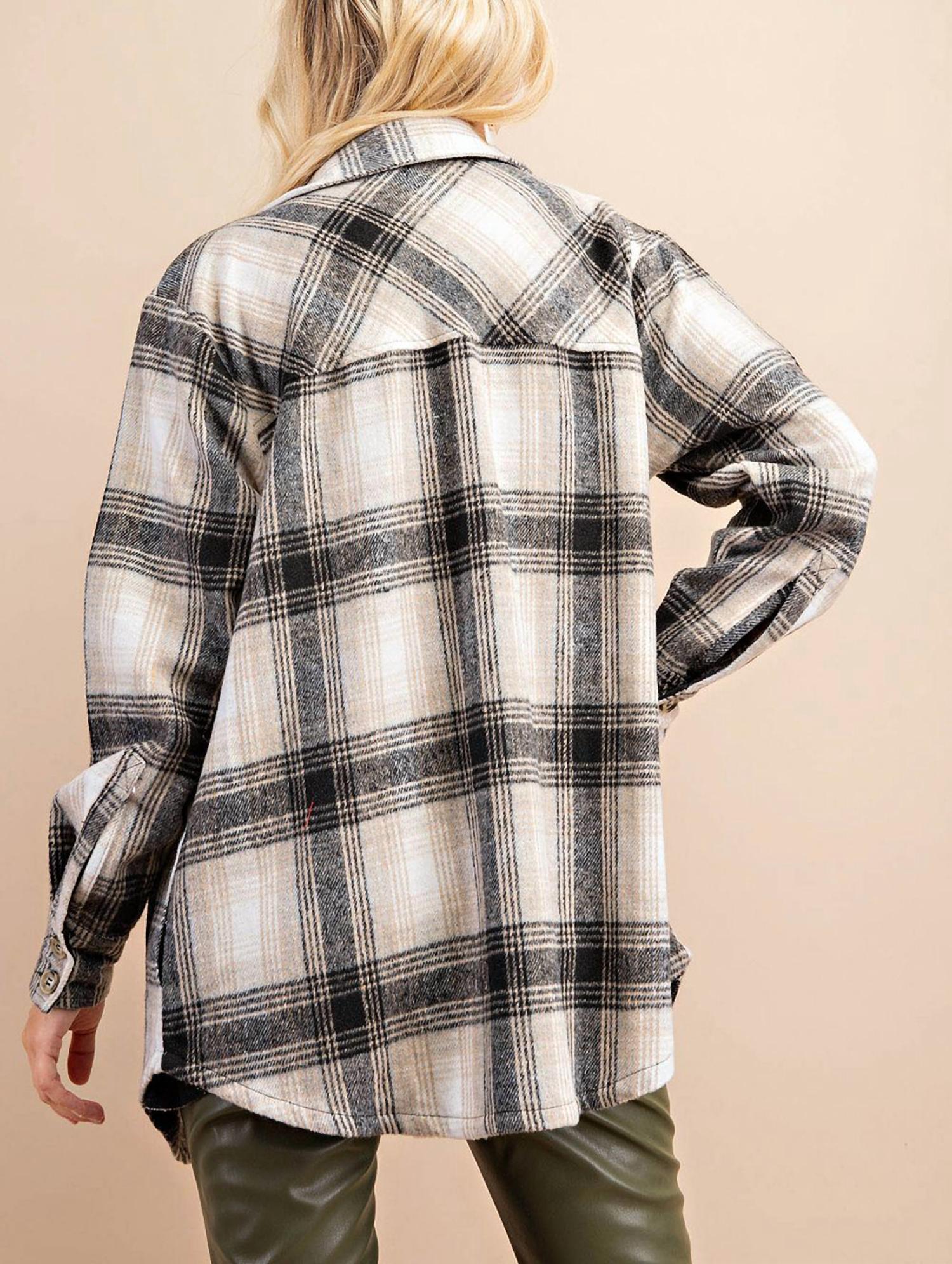 Повседневная, но стильная куртка, которая нужна в каждом гардеробе. Представляем клетчатую куртку-рубашку от KORI, идеальное сочетание рубашки и куртки для сложных дней с переменным климатом. Изготовленная из прочной, но мягкой ткани с составом 65% полиэстера и 35% вискозы, она обеспечивает идеальный баланс тепла и комфорта. Украшенная классическим узором в клетку, она имеет длинные рукава, воротник-стойку и функциональные карманы. Застежка - пуговица. Цвет - черный/бежевый. Идеально подходит для женщин, ищущих универсальные и стильные варианты многослойности.