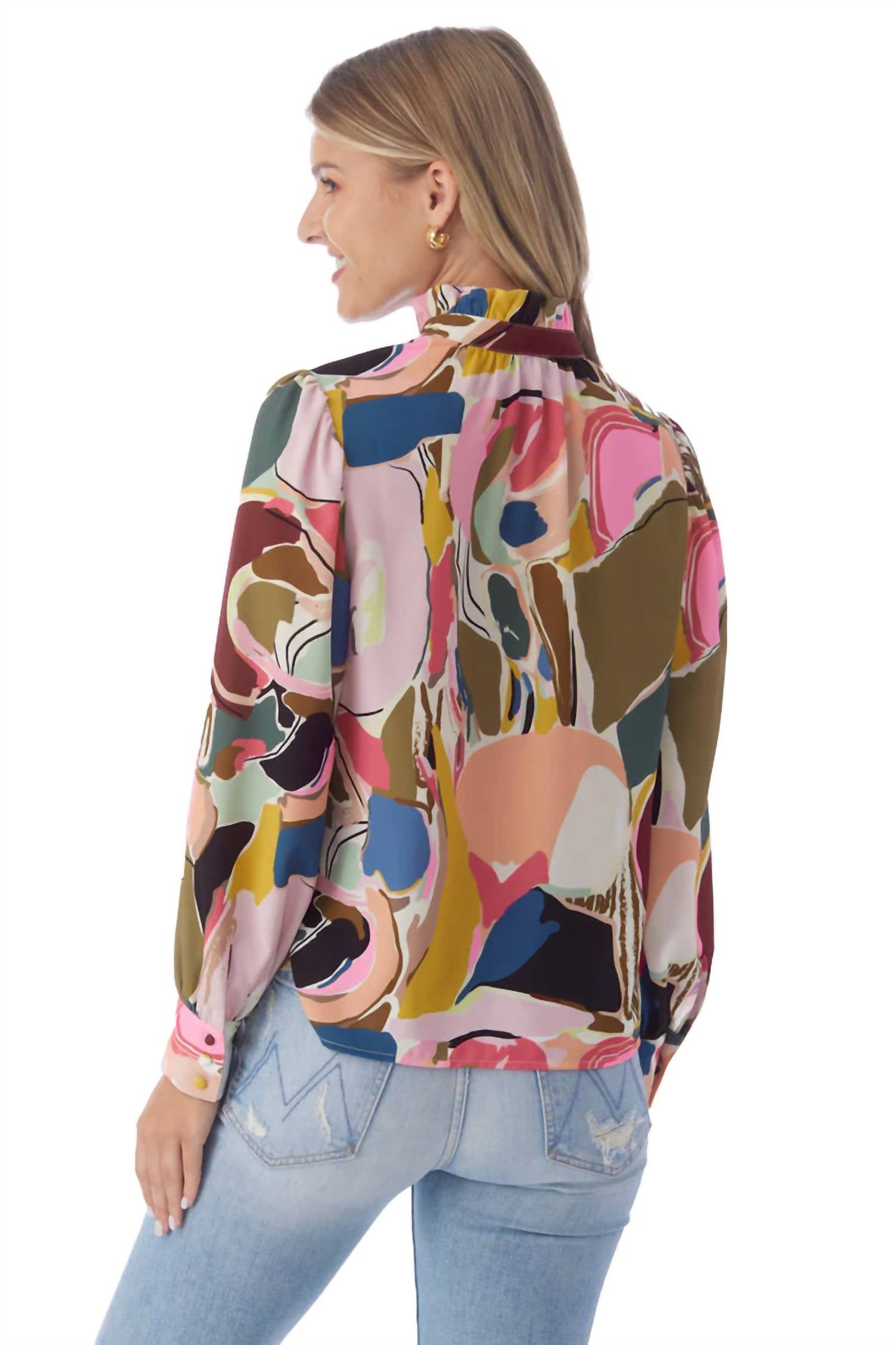 Наша любимая классическая блузка возвращается! Длинные рукава отделаны декоративными пуговицами, а воротник-стойка с оборками переходит в привлекательный V-образный вырез. У нее свободный крой, и ее идеальная длина позволяет носить ее как заправленной, так и свободной. Крепдешин из полиэстера — легкий и прочный, с гладкой, струящейся драпировкой. Уход — машинная стирка в холодной воде на деликатном режиме или ручная стирка. Немедленно снимите. Повесьте сушиться. При необходимости отпарьте или прогладьте прохладным утюгом, чтобы разгладить складки. Свободный крой длиной до бедер.