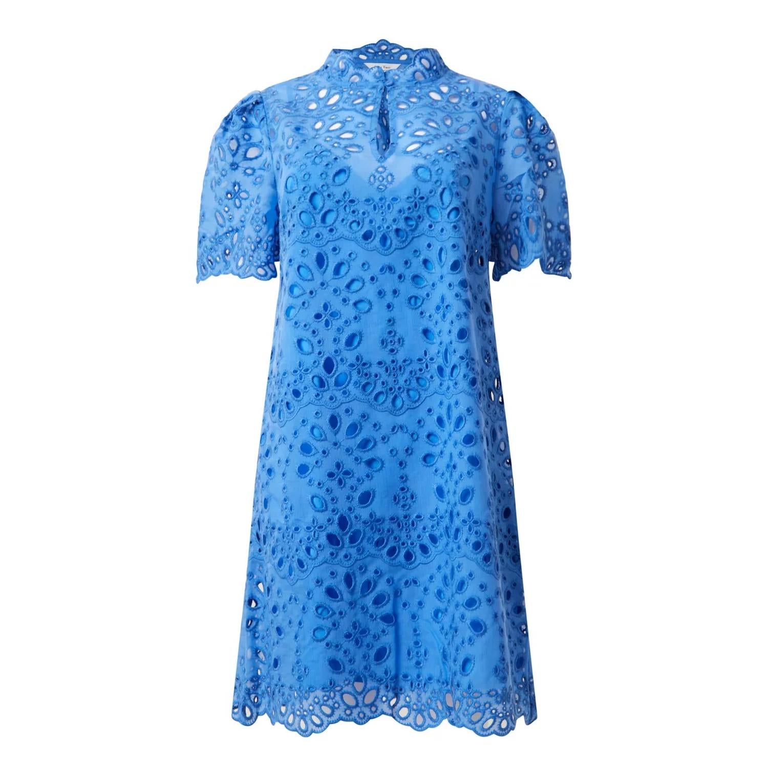 Короткое и воздушное платье для теплых дней. Представляем платье Gebella от Part Two, изысканное платье-футляр в цвете Nebulas Blue, воплощающее элегантность и непринужденность. Это мини-платье имеет высокий вырез с замочной скважиной и застежкой на одну пуговицу, дополненное плиссированными плечами и короткими рукавами для создания строгого образа. Искусно изготовленное из 75% лиоцелла и 25% полиэстера, с подкладкой из 100% вискозы, оно может похвастаться вышитым кружевным дизайном с нежными фестончатыми краями длиной 36 дюймов. Уход за платьем очень прост благодаря инструкциям по машинной стирке, что делает это платье стильным, но не требующим особого ухода дополнением к вашему гардеробу.