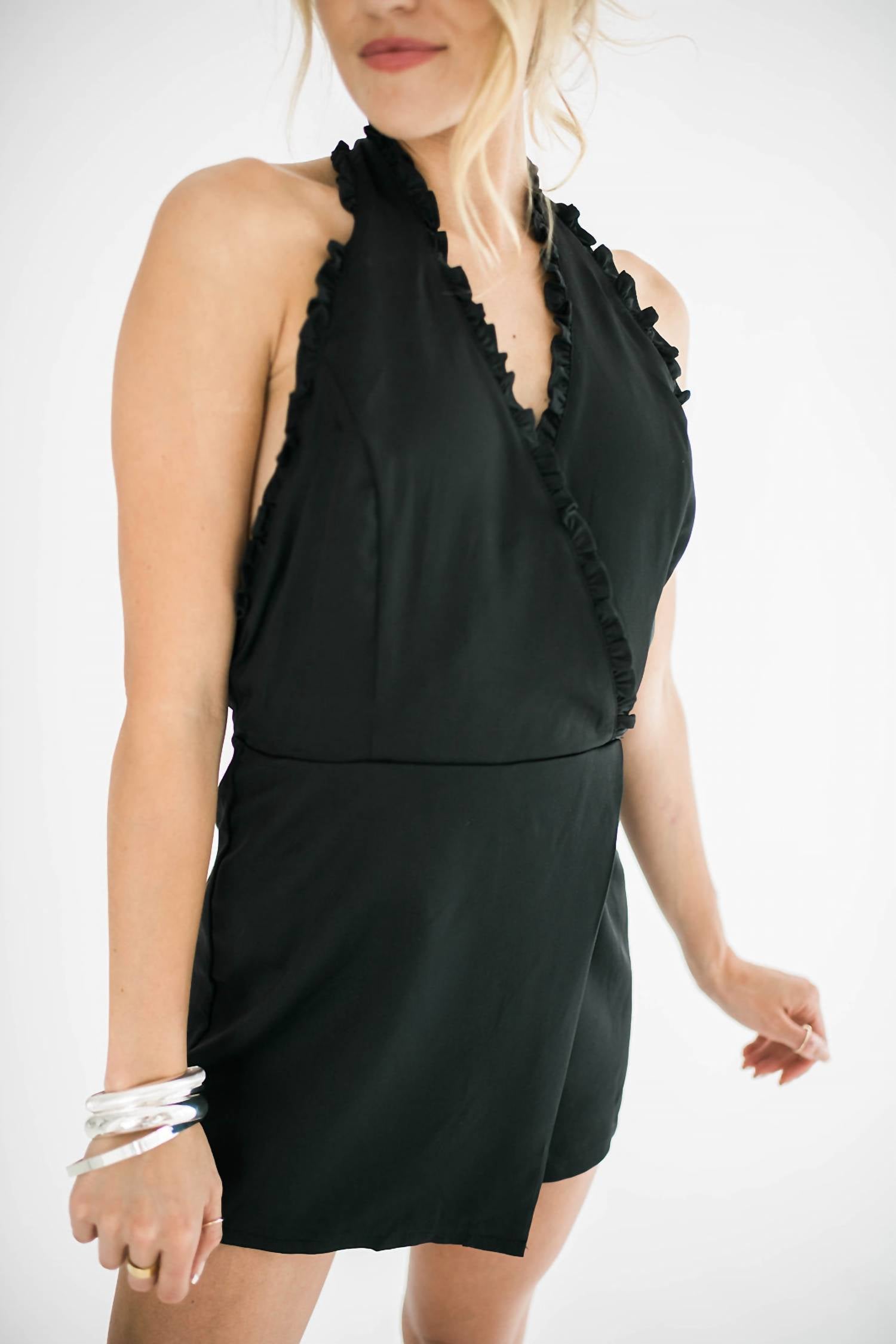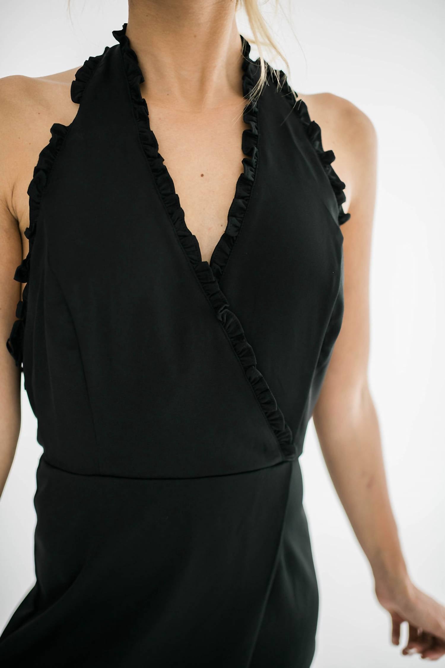 Привлеките внимание с нашим шикарным комбинезоном Sutton с открытой спиной. Этот шикарный предмет одежды выполнен с завязывающимся воротом и деталью спереди. Открытая спина выводит его на новый уровень, делая его идеальным как для дневных, так и для вечерних мероприятий. Оборки и передняя часть создают изысканный образ. Завязывающийся ворот и открытая спина добавляют стильные и элегантные штрихи. Идеально подходит для самых разных случаев, от повседневных выходов до вечерних мероприятий. Состав ткани - 95% полиэстер, 5% спандекс.