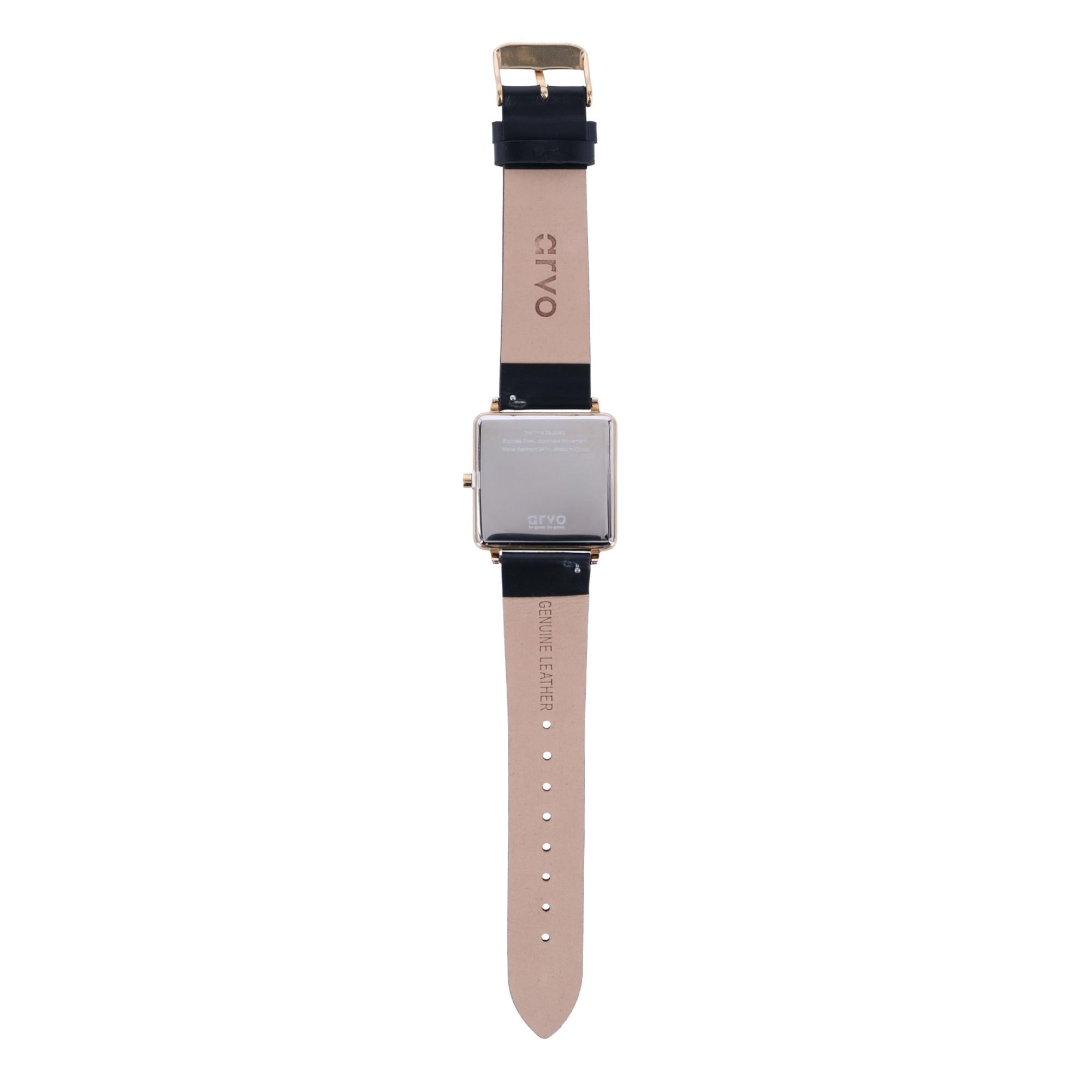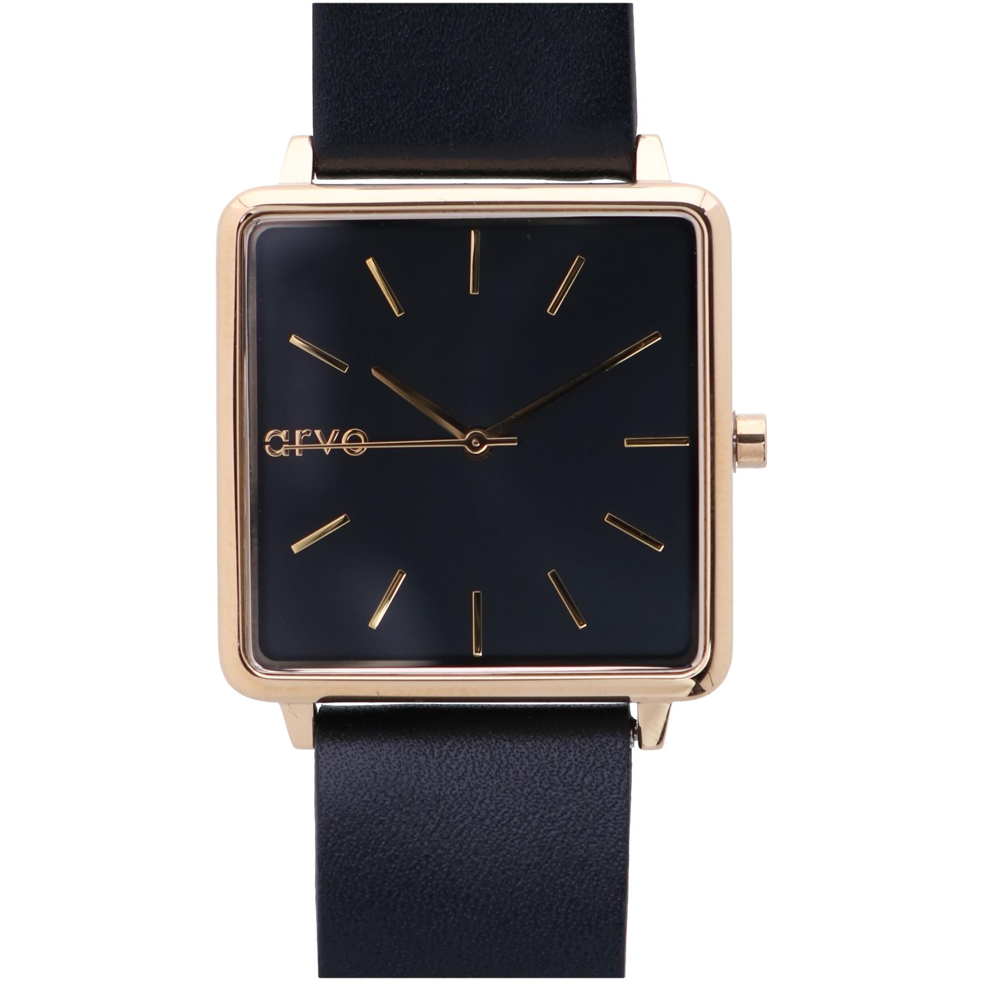 Эта версия часов Arvo Time Squares Watches имеет черный циферблат и 32-миллиметровый квадратный полированный золотой корпус, который создает стильный стиль. Черный кожаный ремешок и золотая пряжка завершают образ. Этот минималистский дизайн идеально подходит для повседневной носки или делового стиля. Добавьте женские часы Arvo Time Squared Watches в свою коллекцию часов и будьте готовы к комплиментам!