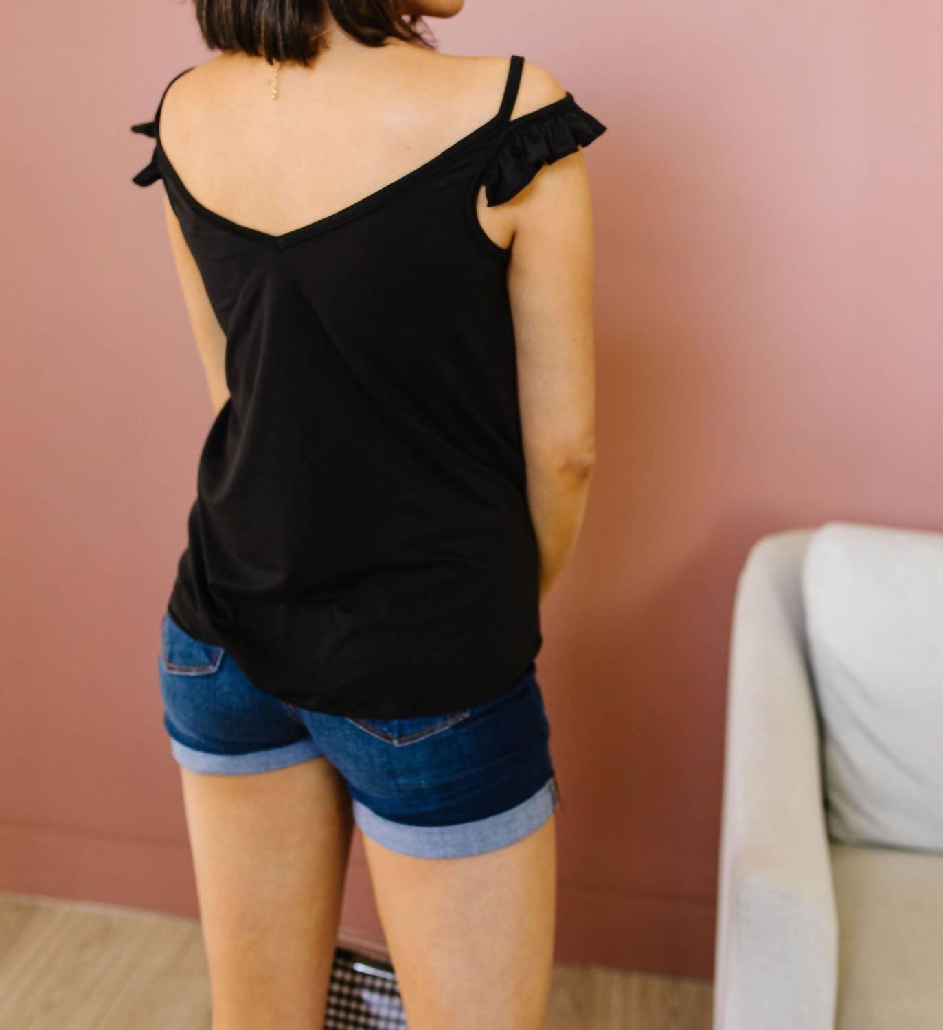 Этот топ имеет привлекательный V-образный вырез, бретели и оборки с открытыми плечами, а мягкий, эластичный трикотаж не может быть более удобным, даже если бы он попытался.