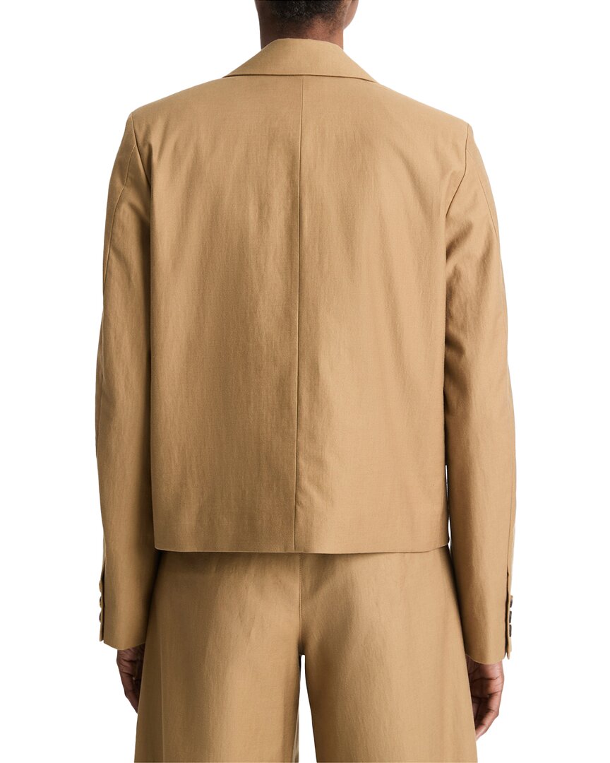 Укороченный блейзер Vince из твила и шерсти, коричневый