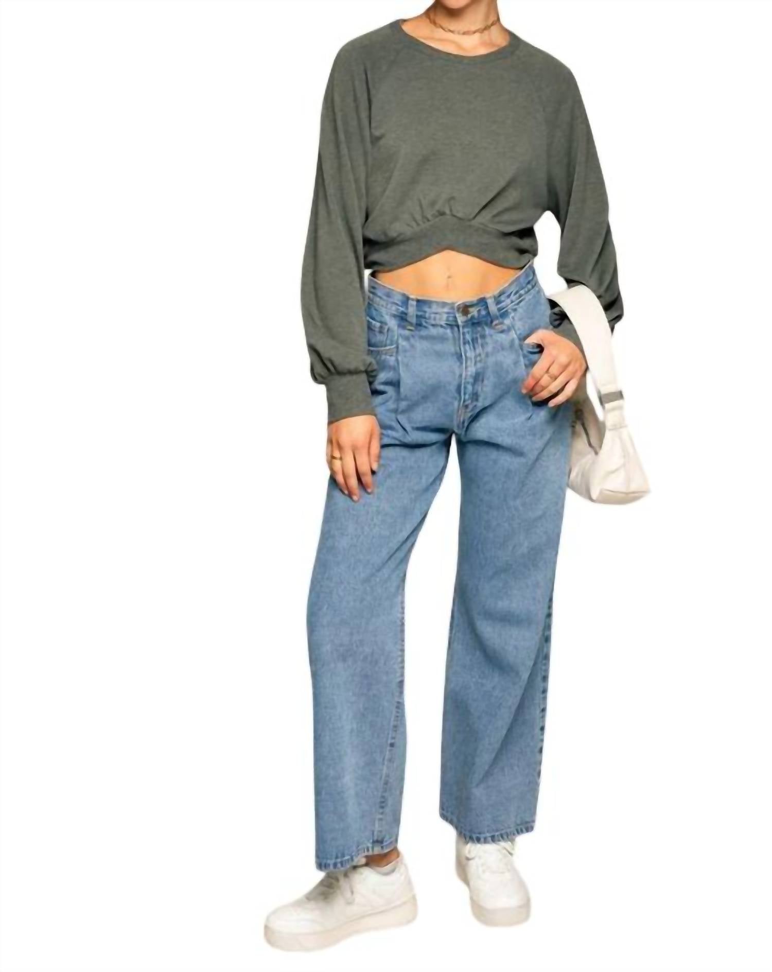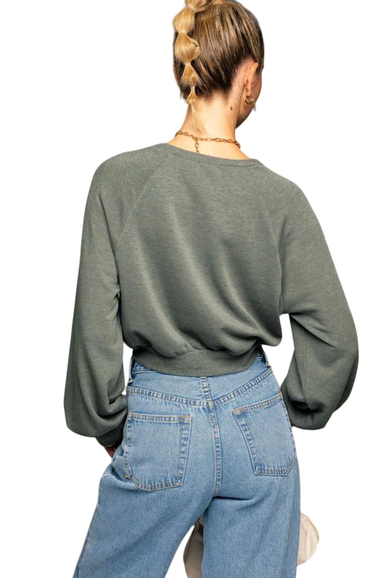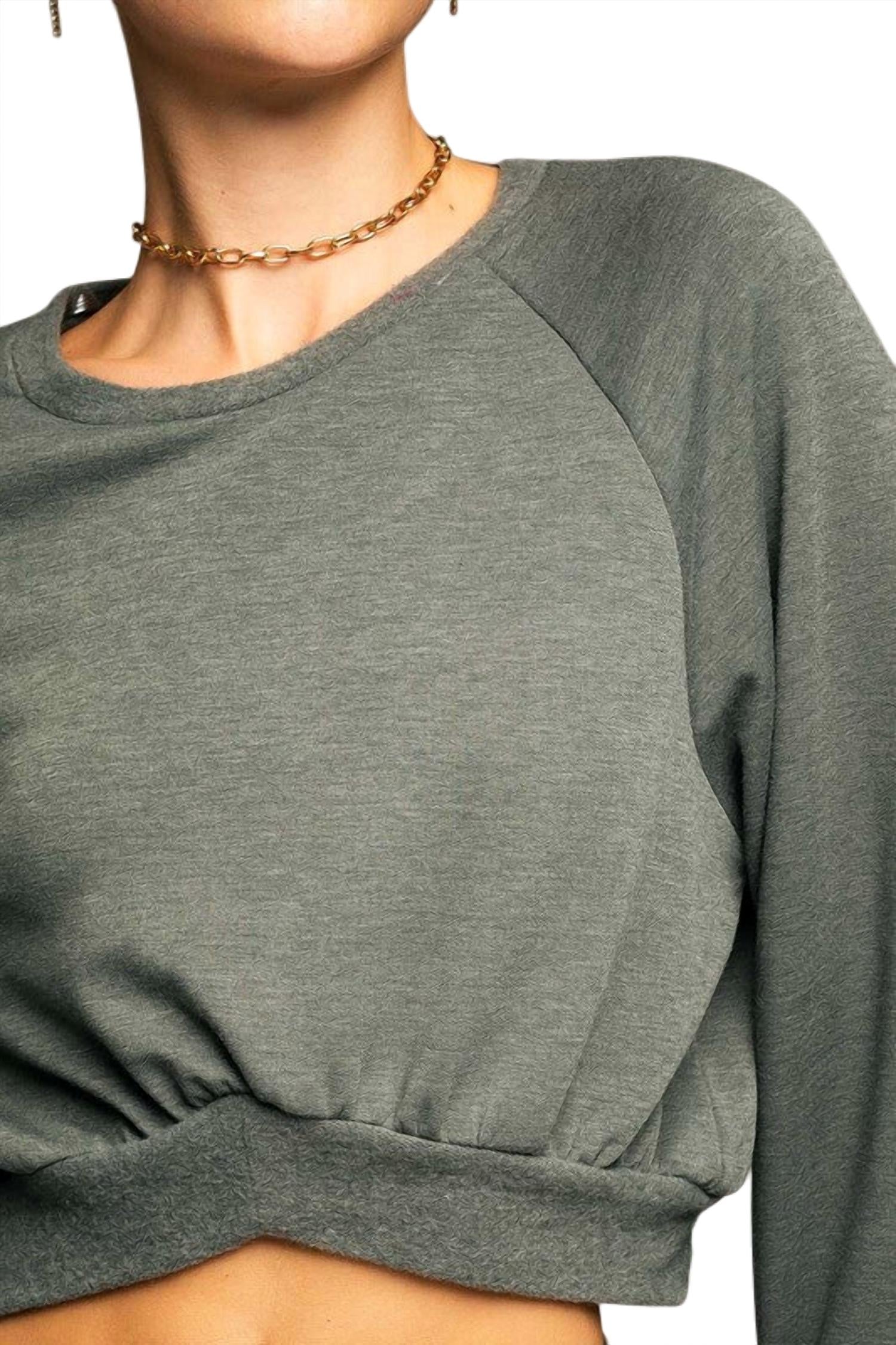 Укороченный свитер с длинными рукавами серого цвета LE LIS