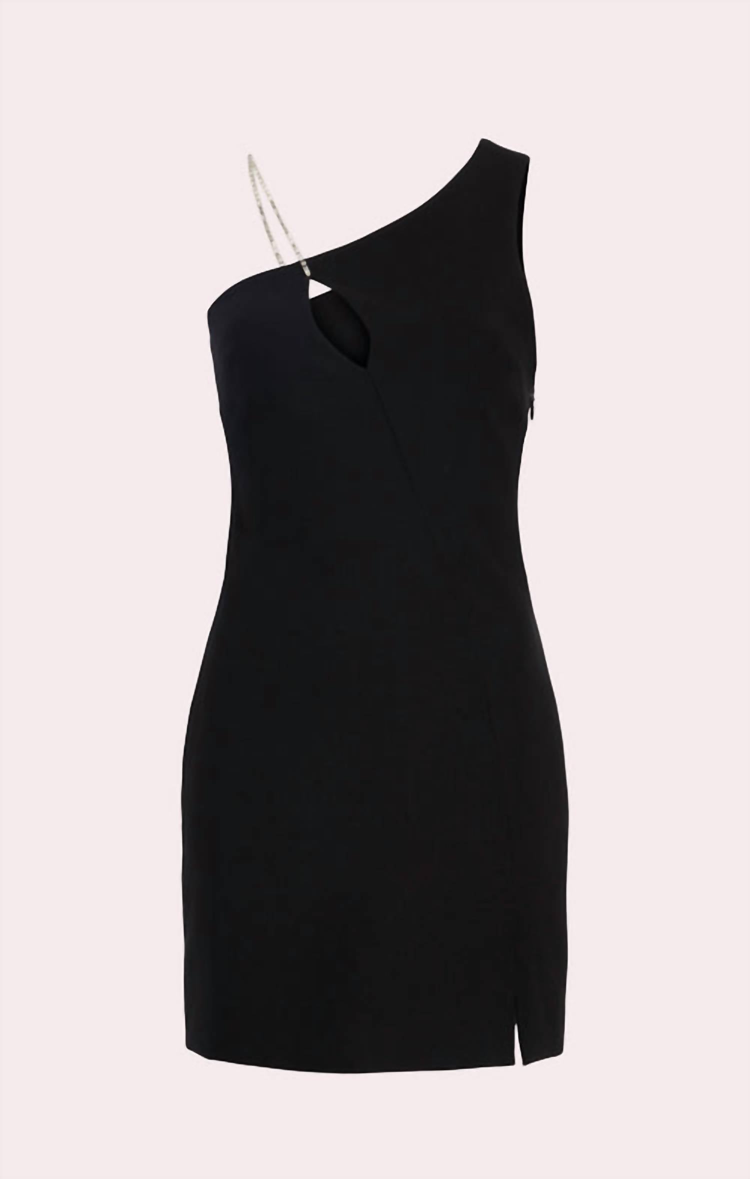 Потрясающий шедевр на одно плечо в классическом черном цвете. Имеет изящный ремешок со стразами. Сложно прошитый ремешок каскадом ниспадает через шикарную вырезанную деталь. Создает знойный и изысканный образ. Облегающий силуэт облегает ваши изгибы. Гладкая боковая застежка-молния обеспечивает бесшовную посадку. Разработано с тщательным вниманием к качеству. Обещает долговечную роскошь. Для максимального ухода и долговечности не забывайте чистить только в химчистке.
