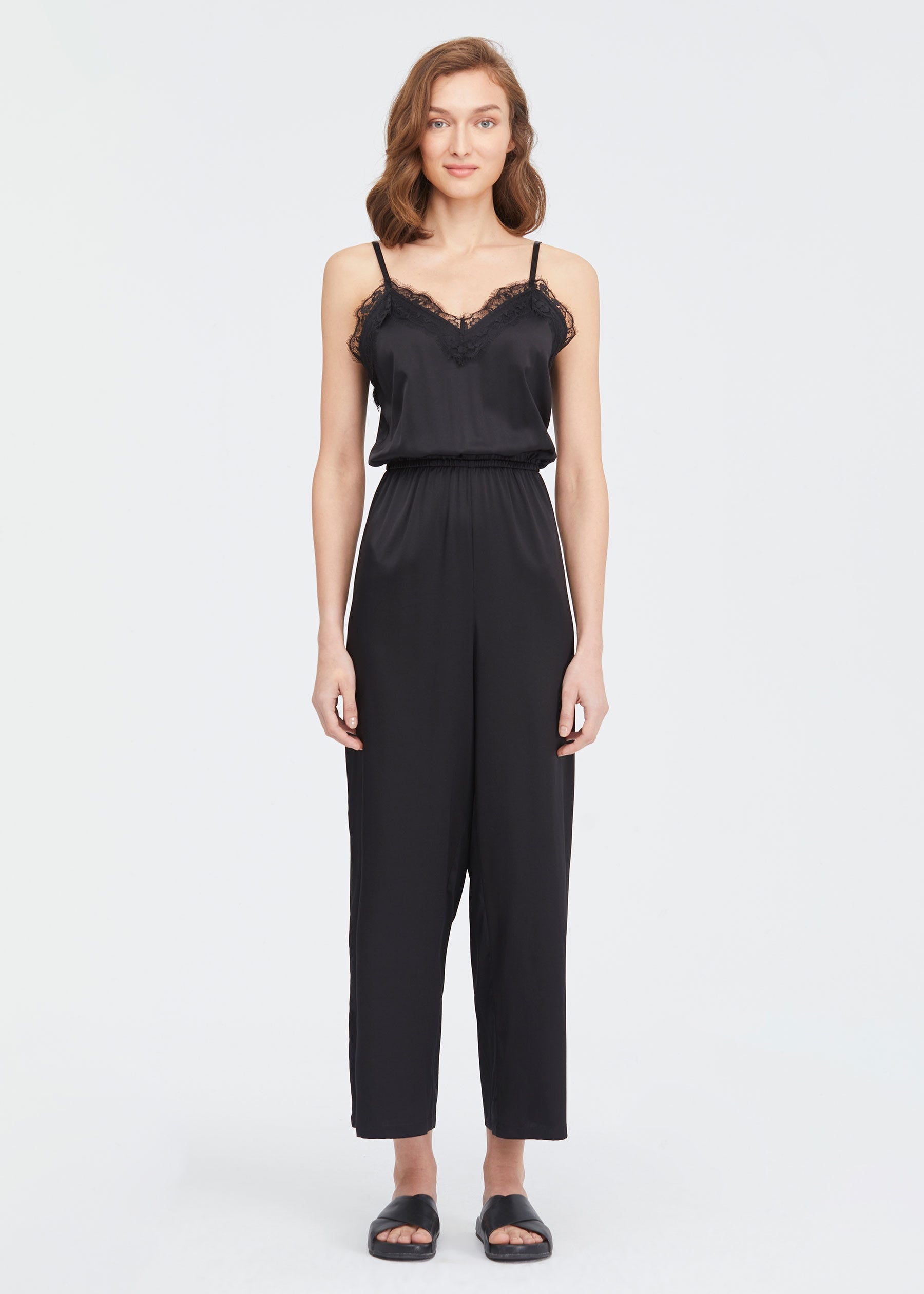 Шелковый комбинезон с кружевной отделкой LILYSILK, черный