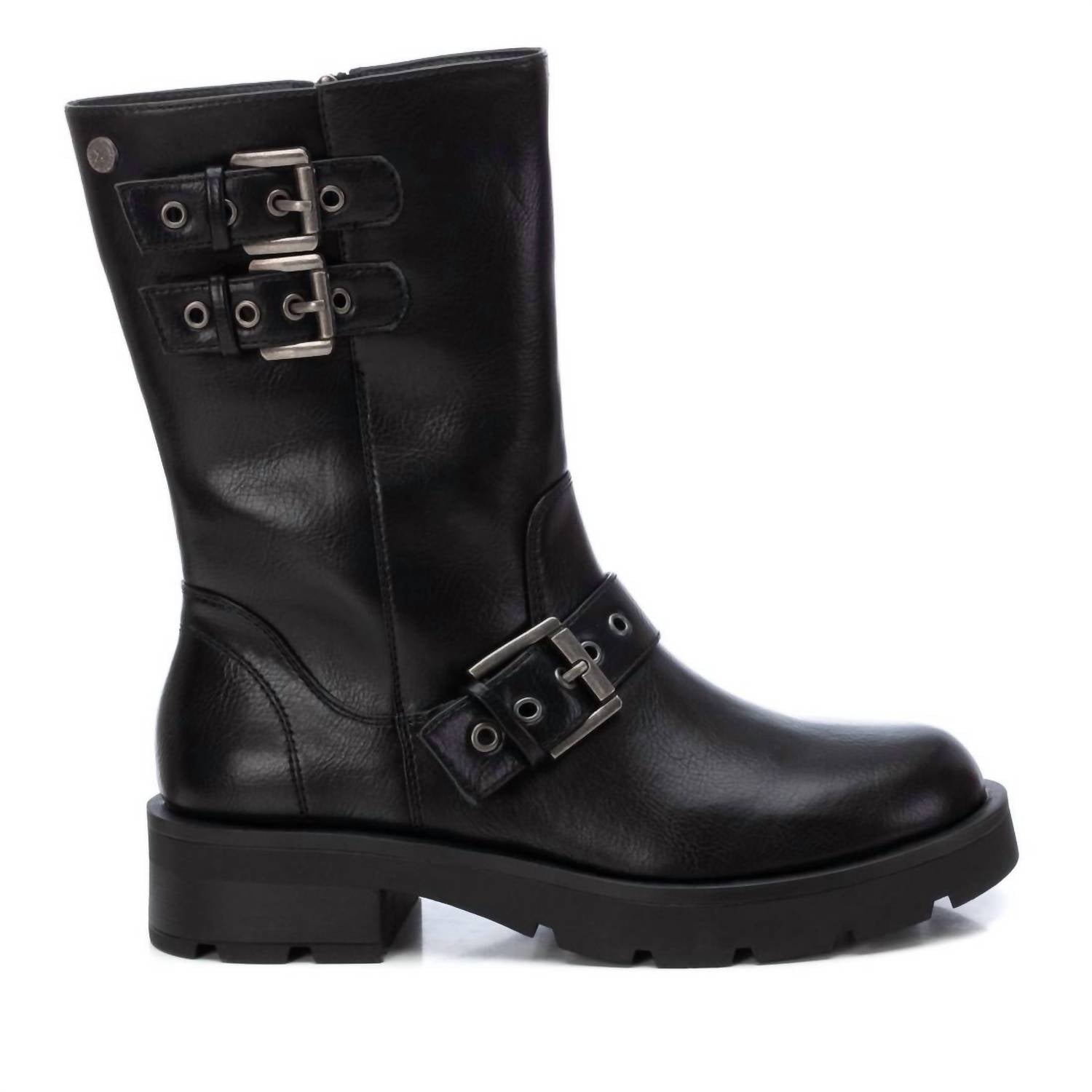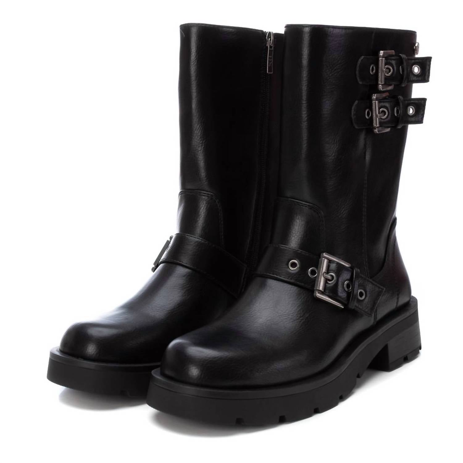 Эти женские байкерские ботинки изготовлены из искусственной кожи с декоративными пряжками и металлическими акцентами. Они имеют блочный каблук высотой 1,57 дюйма, боковую застежку-молнию, мягкую стельку и нескользящую резиновую подошву для комфорта и долговечности.
