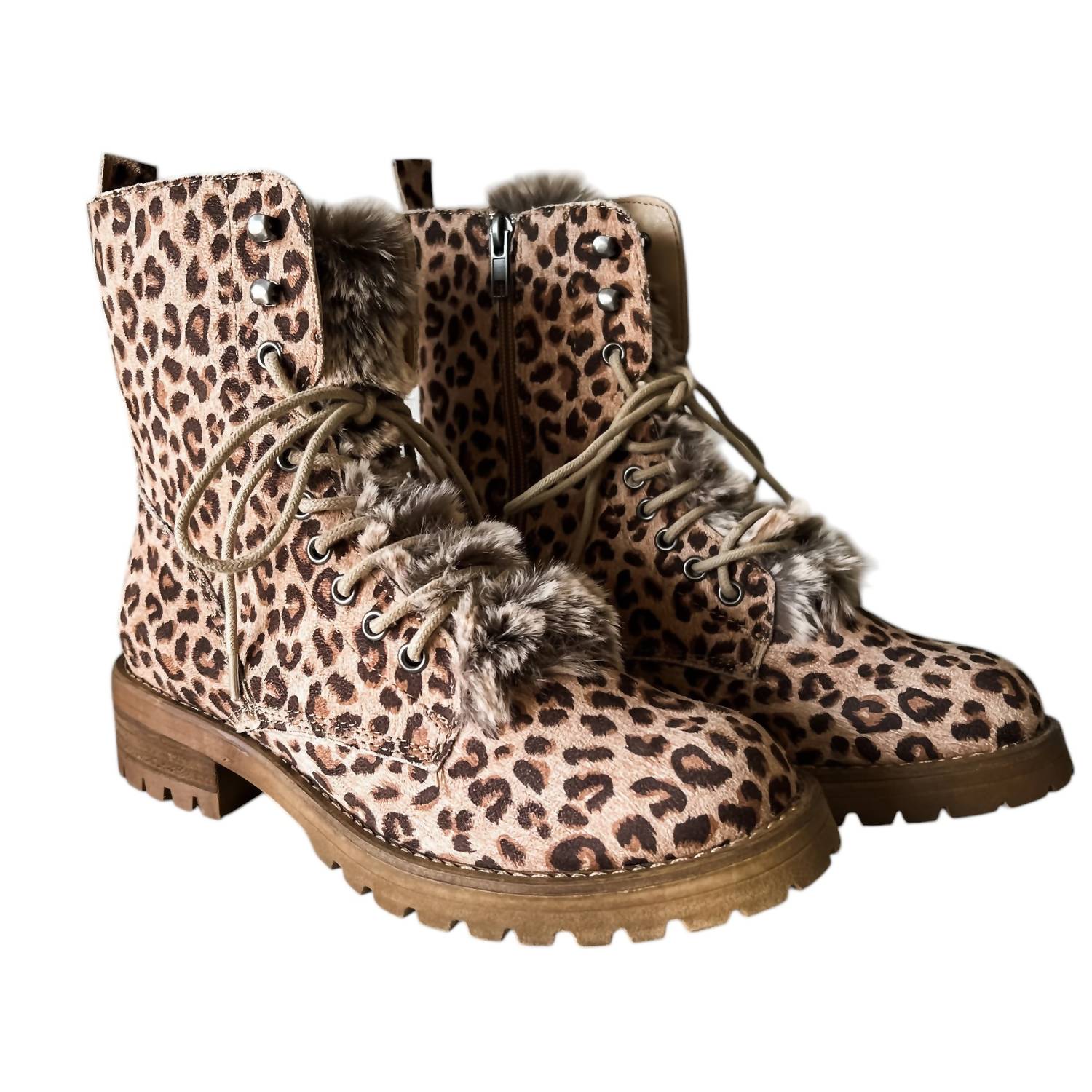 Эти модные ботинки с леопардовым принтом имеют детали из искусственного меха, подкладку из искусственного меха и язычок из искусственного меха. Они имеют боковую молнию и акценты на шнуровке, с искусственным внешним слоем и каблуком высотой 1,5".