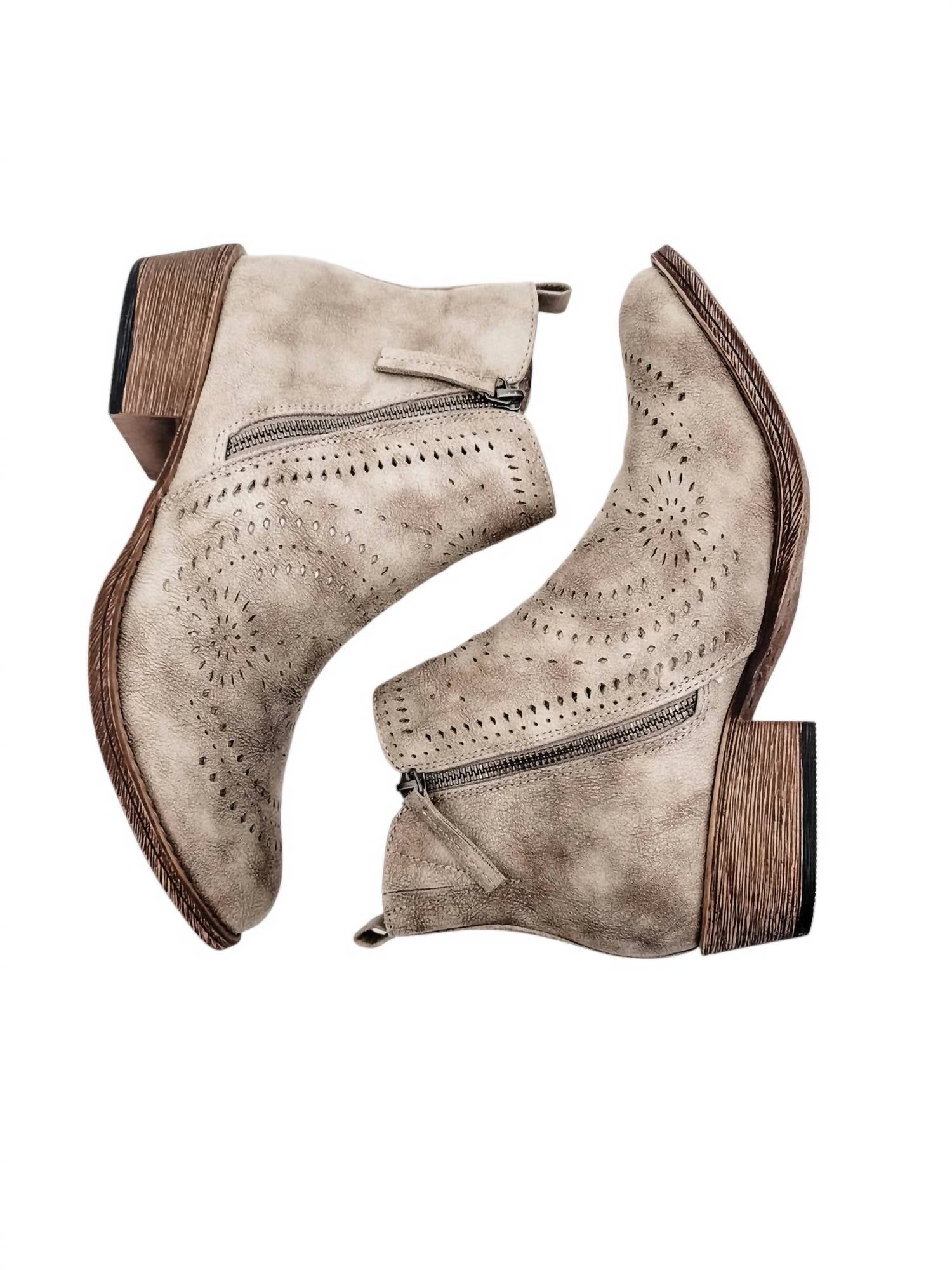 Эти полусапожки до середины щиколотки имеют двойную застежку-молнию и синтетический верх. Они имеют мягкую стельку для комфорта, резиновую подошву для прочности и каблук высотой 1,5 дюйма. Вытравленные вырезы добавляют стильную деталь. Импортные.