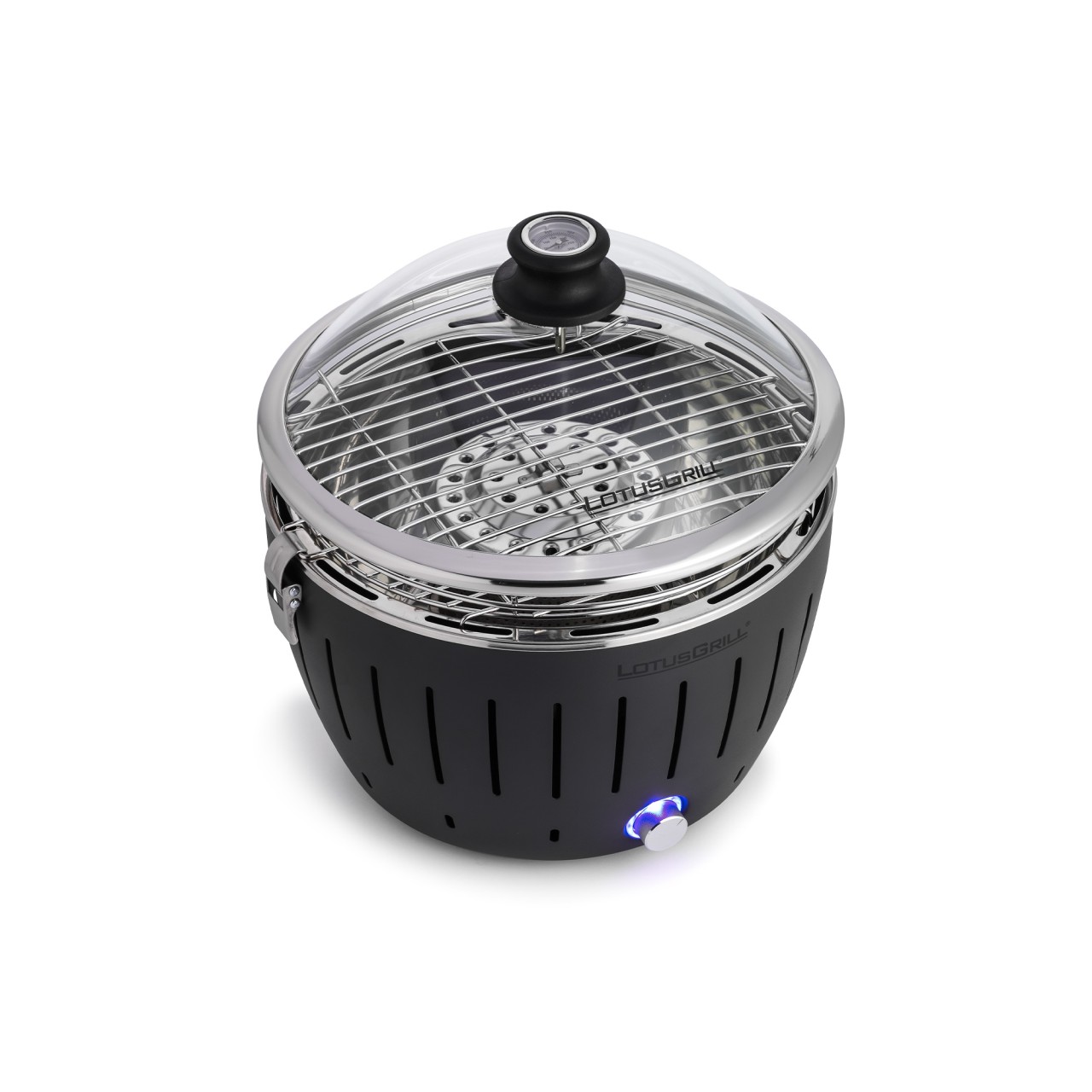 Специально разработанный стеклянный колпак из безопасного стекла делает гриль Lotus настоящим многофункциональным грилем. С помощью термометра, встроенного в ручку, можно в любое время удобно считывать достигнутую температуру.