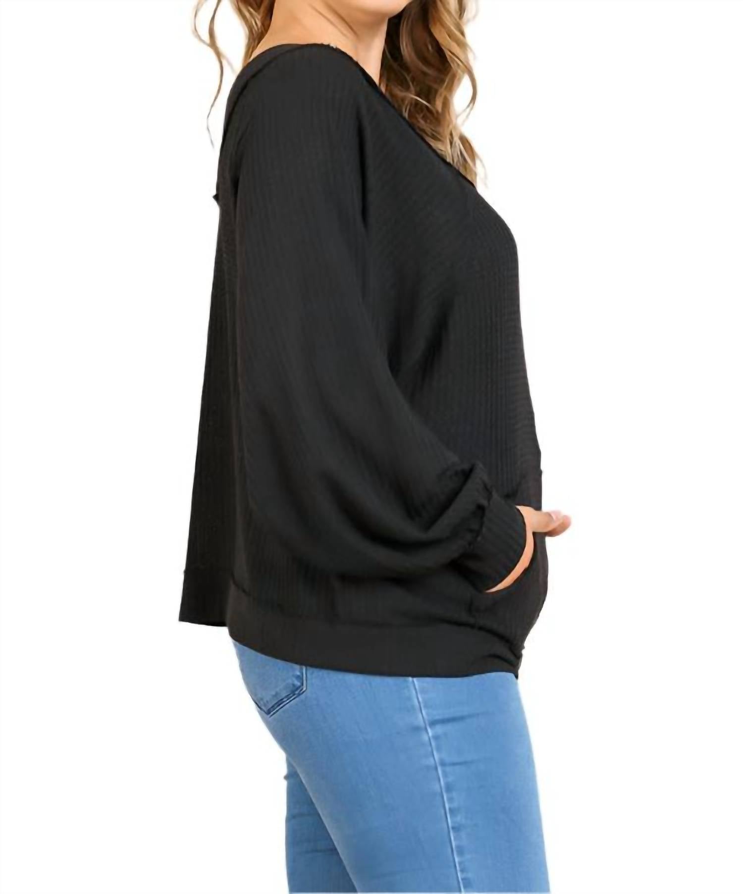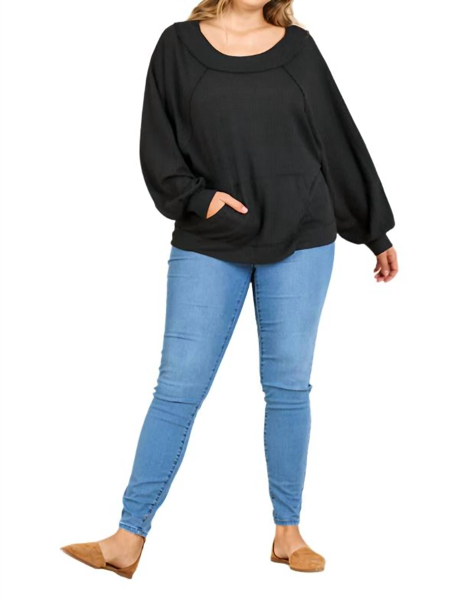 Представляем топ вафельного трикотажа Kangaroo Pocket от Umgee, шикарное дополнение к вашему гардеробу в универсальном базовом черном цвете. Этот топ вафельного трикотажа средней плотности с длинными рукавами-фонариками и удобной свободной посадкой идеально подходит для уютных дней. Состав: 60% хлопок, 37% полиэстер, 3% спандекс. Застежка: надевается с удобным карманом-кенгуру. Этот импортный топ разработан для легкого ухода с инструкциями по ручной стирке, что делает его стильным и практичным выбором для любого повседневного или бохо-образного ансамбля.