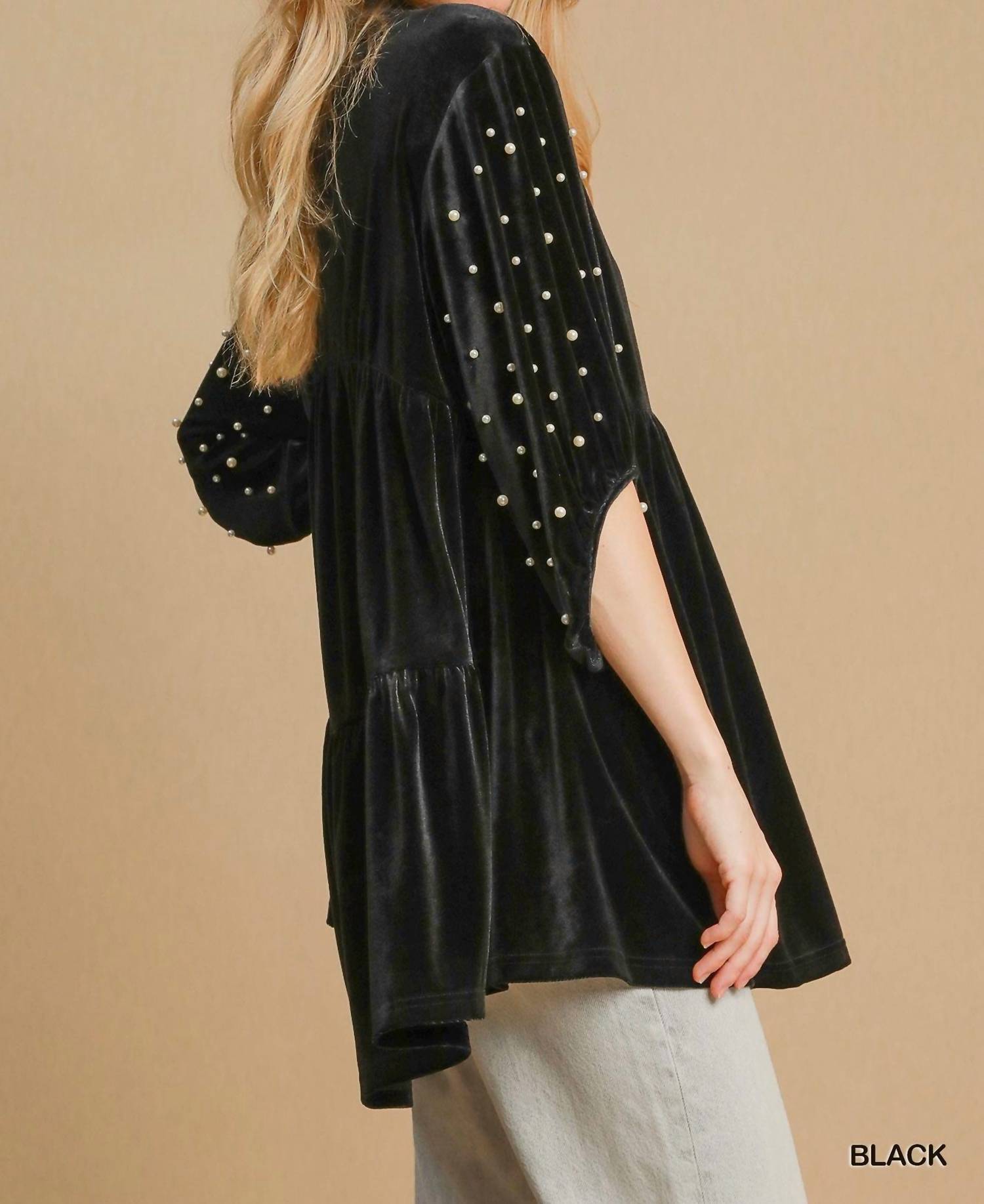 Идеальное дополнение к любому гардеробу, эта классическая блузка в стиле туники льстит и непринужденна. Вы можете легко перейти от работы к ужину в этом шикарном топе. Примите элегантность с топом-туникой Velvet Pearl Tiered от Umgee, шикарным дополнением к любому гардеробу. Эта туника, изготовленная из 95% полиэстера и 5% спандекса, имеет рукава три четверти, украшенные жемчужной отделкой, которая дополняет ее изысканный воротник-стойку. Разработанная без определенной длины изделия, она предлагает вневременной черный оттенок, который обязательно впечатлит. Застежка - застежка на пуговицы.