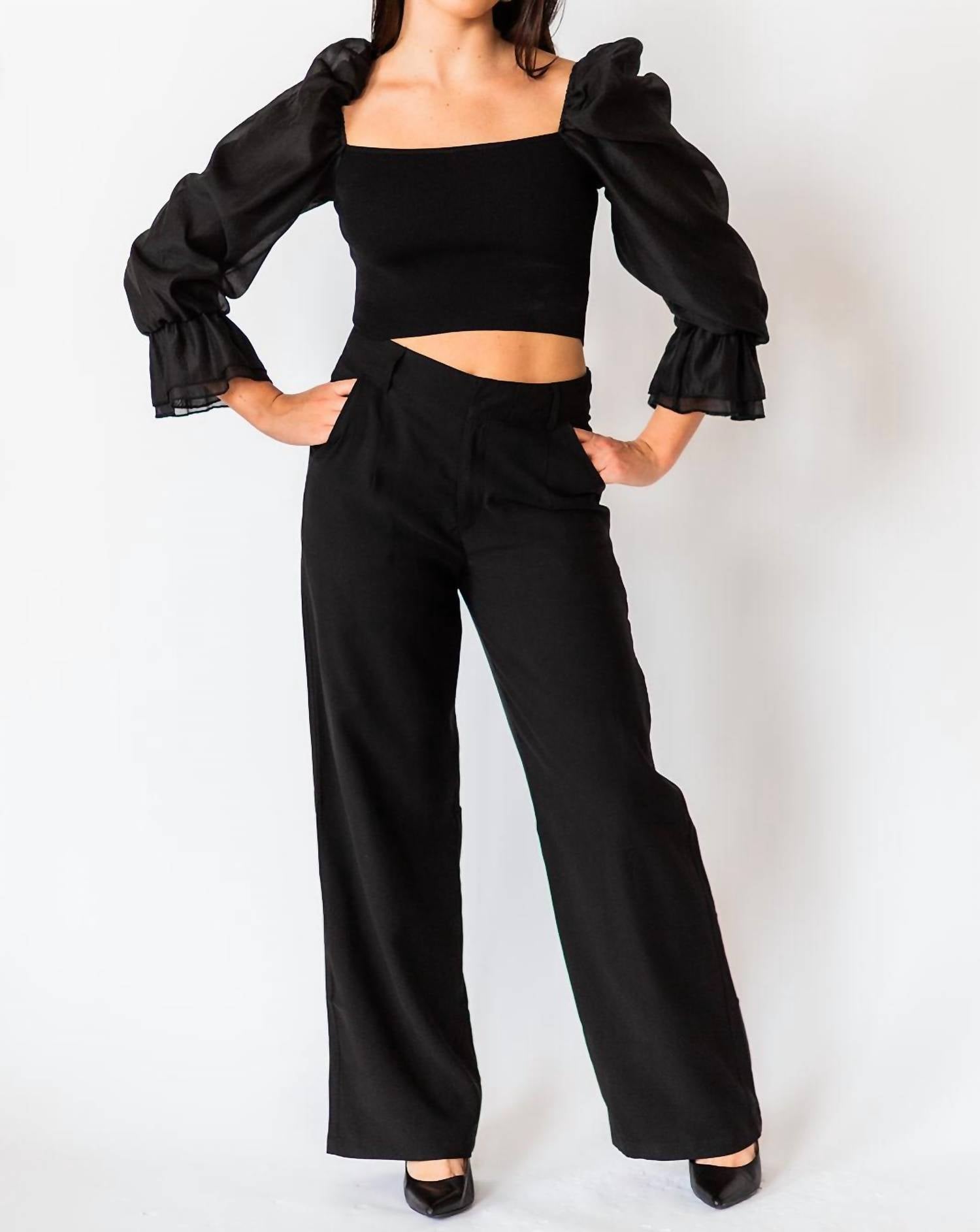 Идеальный укороченный топ для теплых дней. Представляем Harper Top от Falcon Park, эффектную вещь, которая легко украсит любой наряд. С его прозрачными рукавами-фонариками и облегающим, но эластичным лифом этот укороченный топ создан, чтобы заявить о себе. С квадратным вырезом и длиной 16 дюймов для среднего размера он предлагает шикарный и модный силуэт. Изготовленный из однотонного черного цвета, этот топ имеет застежку-липучку для удобства ношения. Идеально подходит для добавления драматического стиля в любой ансамбль, будь то в сочетании с брюками по фигуре или потертыми джинсами.
