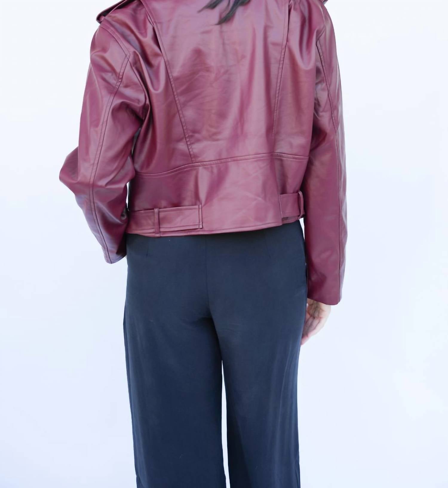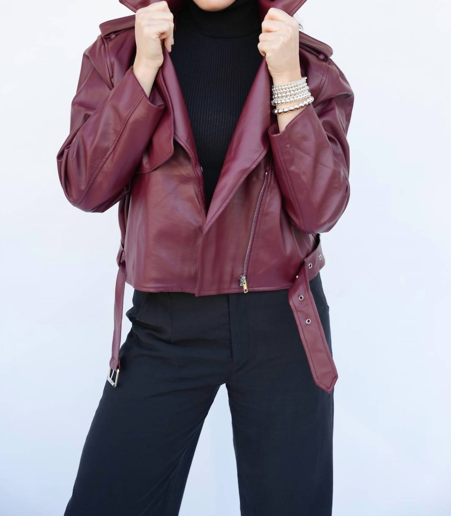 Каждому нужна такая кожаная куртка в своем шкафу. Встречайте кожаную куртку Cayli от Falcon Park, которая станет неотъемлемой частью любого модного гардероба. Эта куртка с длинными рукавами насыщенного бордового оттенка изготовлена ​​из искусственной кожи с составом 65% ПУ и 35% полиэстера, предлагая шикарную альтернативу классическому черному цвету. Она имеет застежку-молнию, гладкий пояс и практичные карманы, что делает ее идеальной для легкого перехода из дня в вечер. Эта куртка длиной 21,5 дюйма создана, чтобы подчеркивать фигуру благодаря поясу, утягивающему талию, и универсальному силуэту.