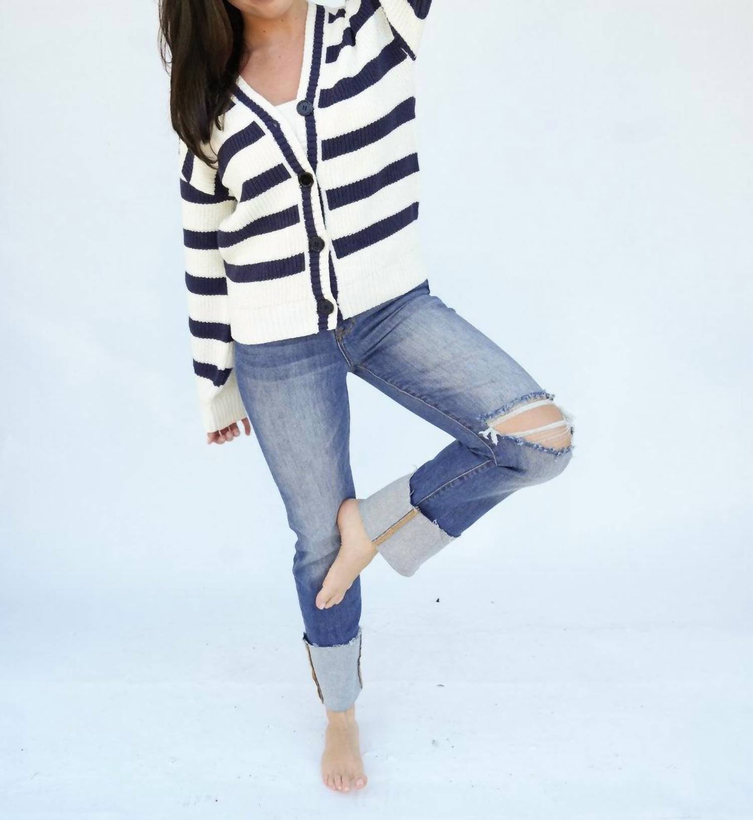 Классический крой, который одинаково хорошо смотрится как застегнутым, так и расстегнутым. Встречайте свой идеальный выбор для уютного стиля в этом сезоне — кардиган Kaylee от Falcon Park. Этот кардиган демонстрирует длинные рукава и удобную посадку oversize, изготовлен из смеси хлопка с 60% хлопка и 40% акрила для мягкого тепла. Демонстрируя шикарный полосатый рисунок, он имеет глубокий V-образный вырез и застежку на пуговицы, что обеспечивает как удобство, так и элегантность. Длина изделия составляет 24 дюйма, он обеспечивает достаточное покрытие и стиль, что делает его незаменимым дополнением к вашему гардеробу.