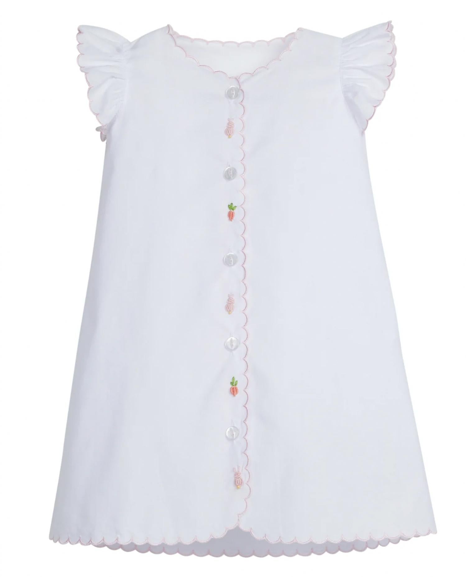 Представляем дневное платье Pink Bunny от Little English, вневременную вещь, идеально подходящую для вашей новорожденной девочки. Это официальное платье украшено очаровательной вышивкой в ​​виде кролика и морковки, которая добавит милого штриха для особых случаев, таких как первая Пасха ребенка. Изготовленное из 100% хлопка, оно обеспечивает мягкий комфорт для нежной кожи. Застежка - застежка на пуговицы спереди. Уход - машинная стирка в холодной воде, сушить в разложенном виде; для достижения наилучшего результата только сухая чистка.