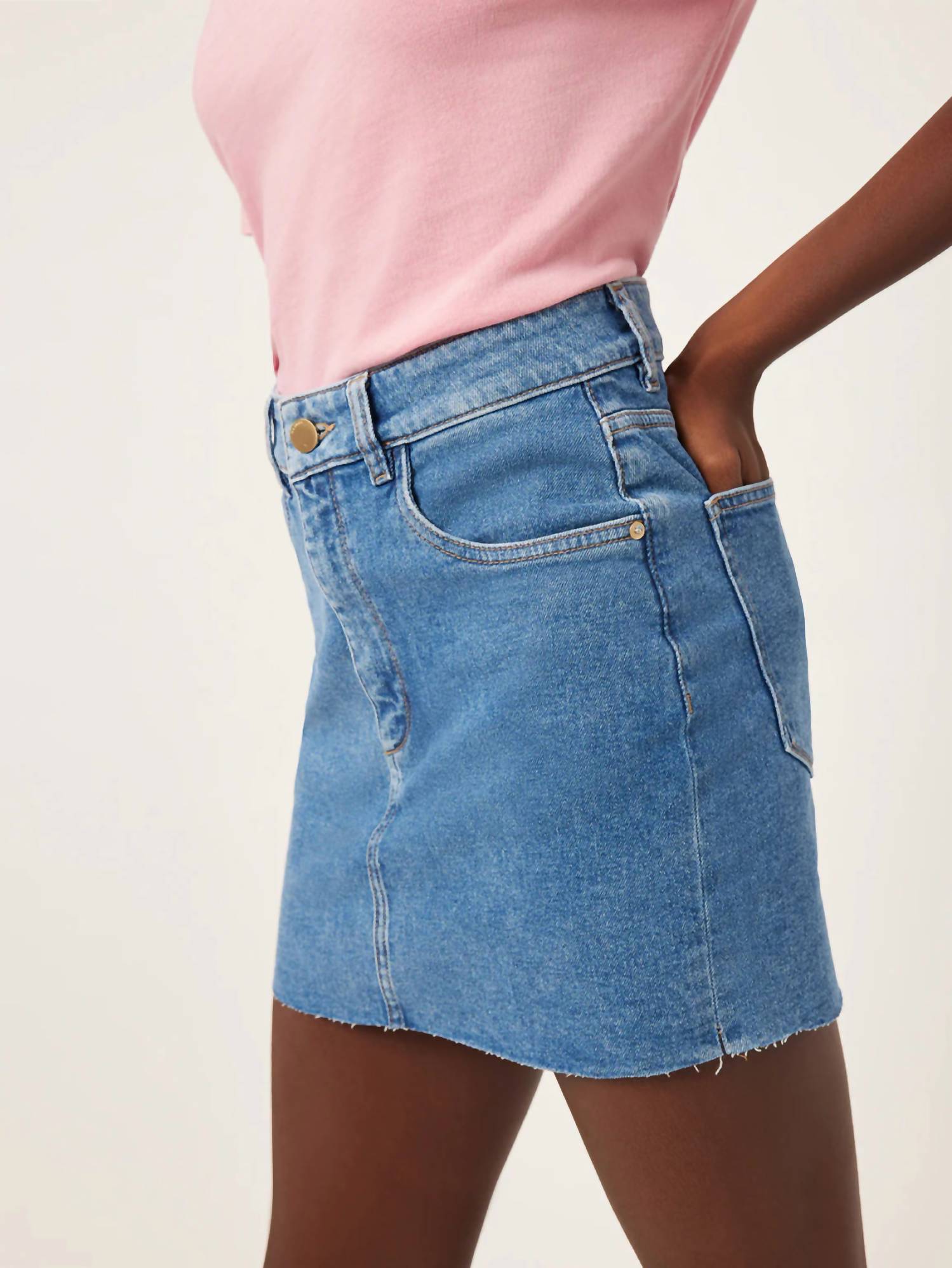 Покажите нужную длину ноги в этой облегающей мини-юбке. Представляем юбку Asra - Classic от DL1961, вневременную мини-юбку в ярком оттенке Blue Rapids, которая идеально подходит для придания винтажного штриха любому наряду. Эта юбка изготовлена ​​из 100% хлопка и имеет необработанный край вместе со строчкой цвета хаки и матовой золотой фурнитурой, что подчеркивает ее аутентичную привлекательность из денима. При длине 15 дюймов и нижнем отверстии 36 дюймов для размера 25 она удобно сидит на вашей естественной талии, обеспечивая облегающую посадку. Наслаждайтесь выбором экологичной моды, так как эта модель вносит вклад в устойчивое производство волокна благодаря партнерству DL Vintage с Recover.