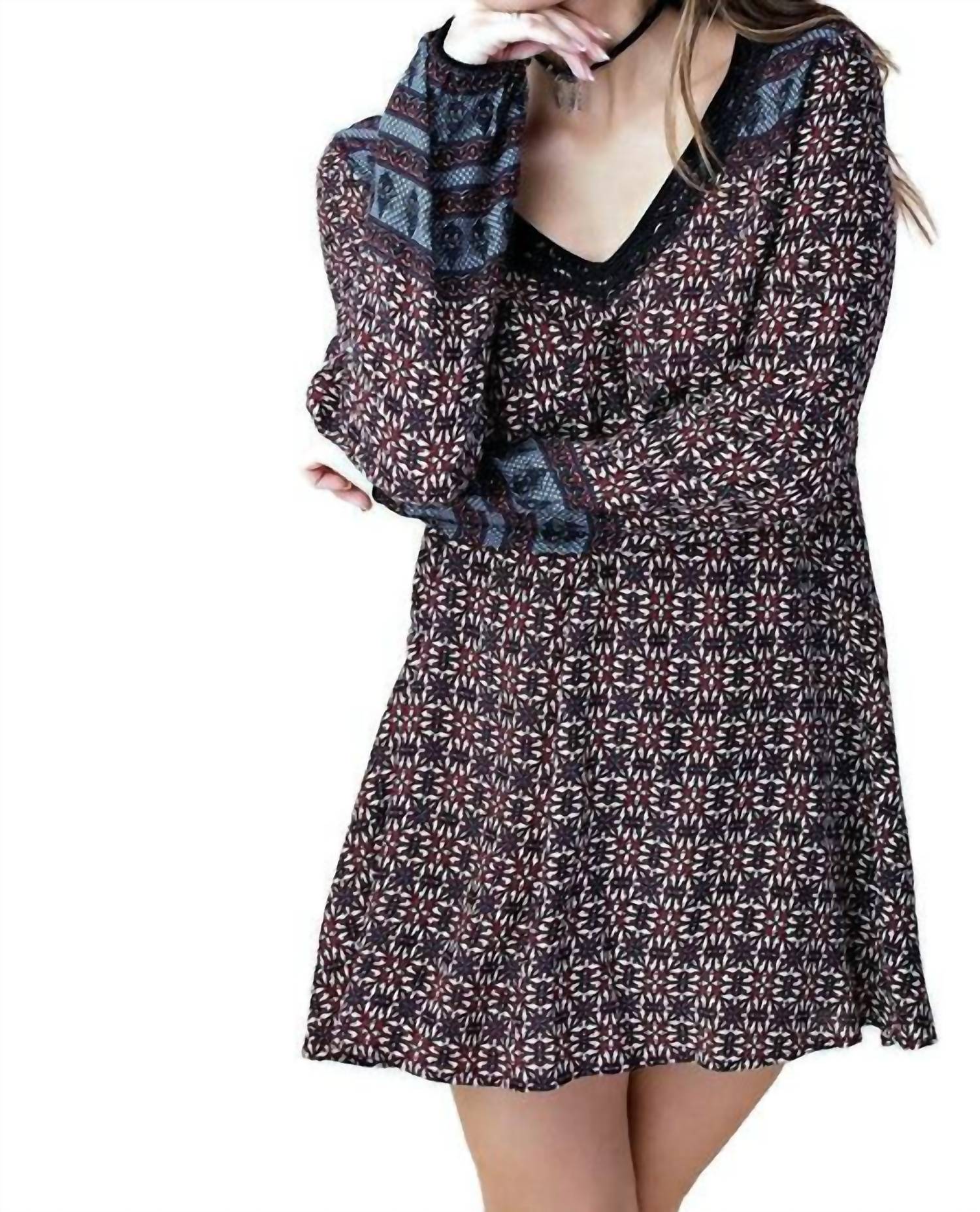 Поднимите свой гардероб с платьем Border Print Swing Dress от KORI, потрясающим изделием насыщенного бордового оттенка, которое идеально подходит как для повседневных, так и для особых случаев. Это платье имеет V-образный вырез, геометрический узор и длинные рукава с резинкой, дополненные кружевной отделкой и замочной скважиной сзади с застежкой на пуговицы. Изготовленное из 100% вискозы, свободное платье обеспечивает приятную посадку. Уход за этим изделием: ручная стирка или профессиональная химчистка.