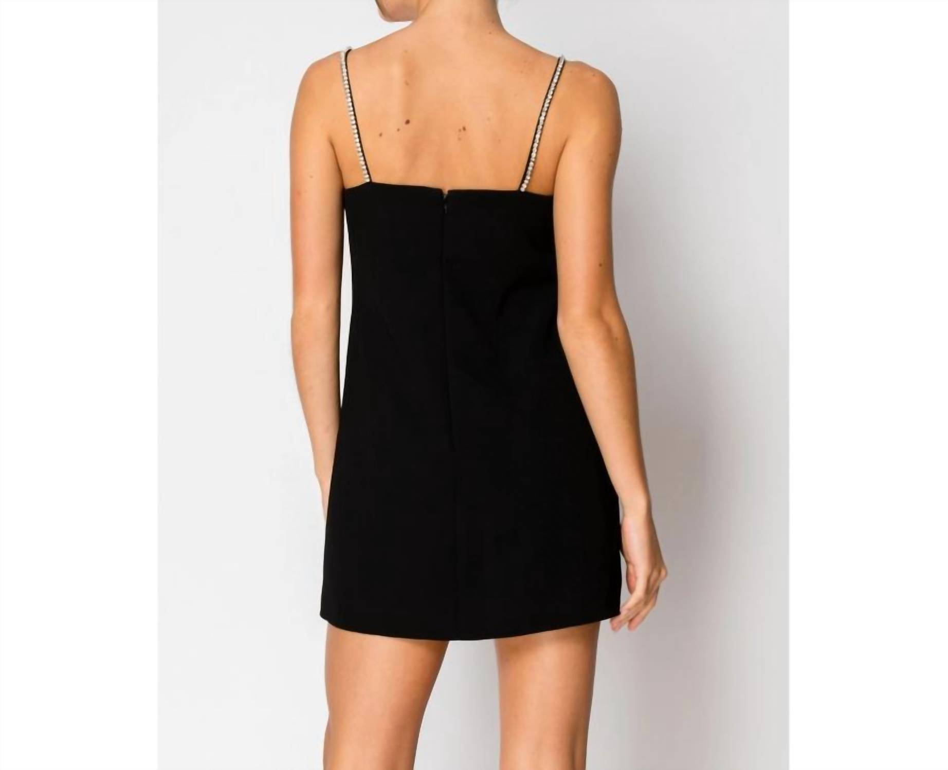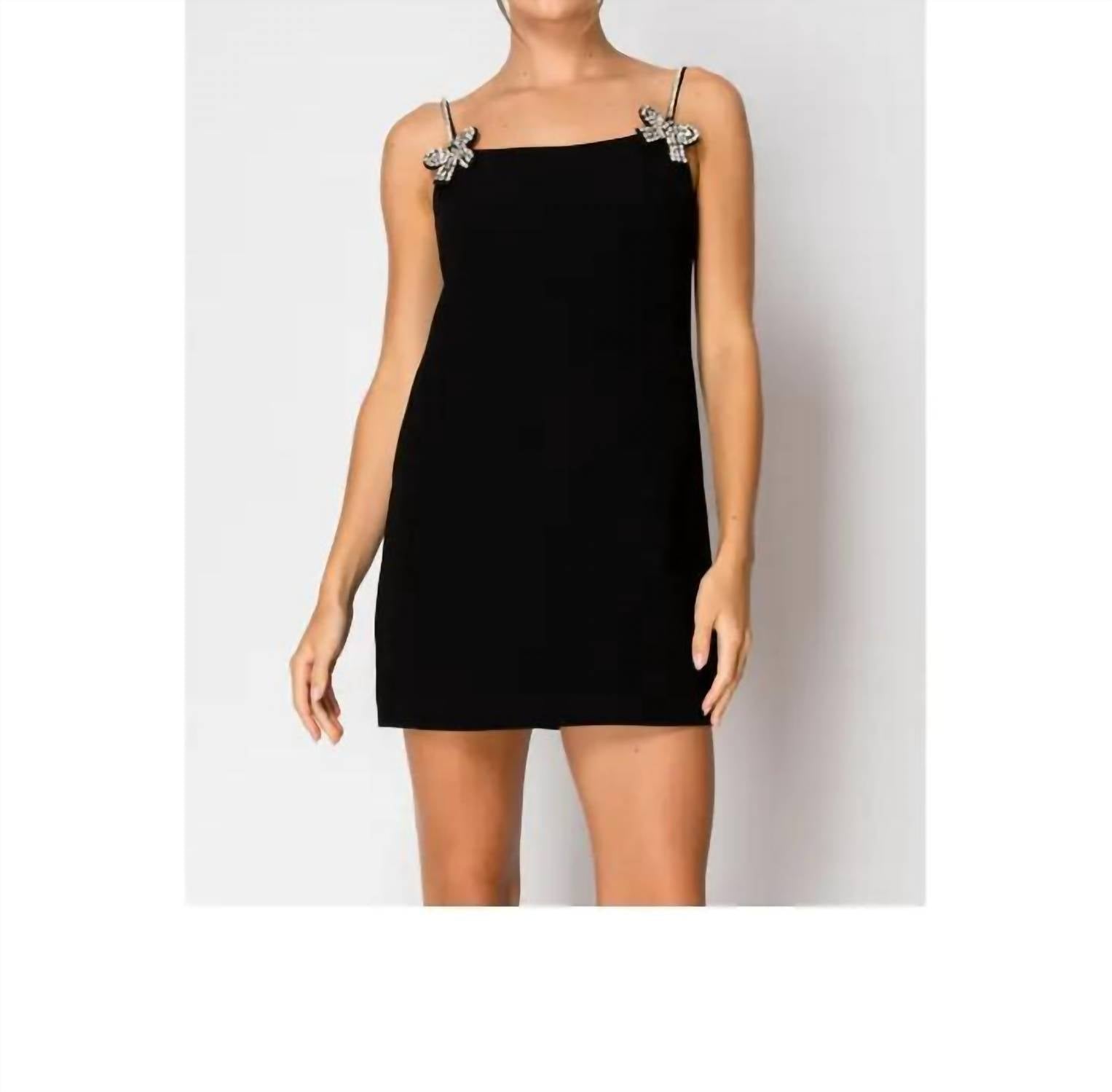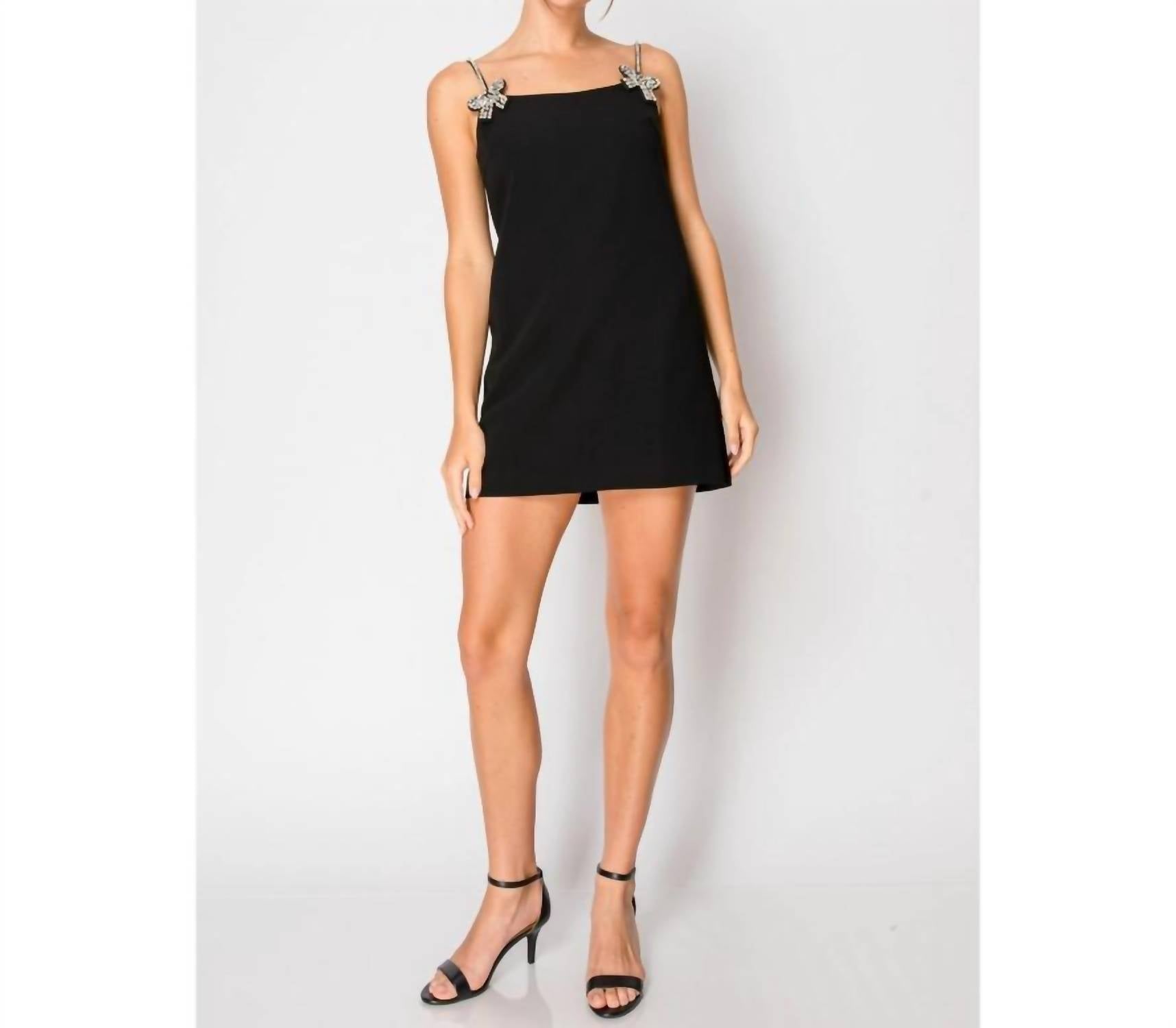 Представляем мини-платье Crystal Embellished от INA, изысканное изделие в классическом черном цвете. Это платье имеет тонкие бретельки, украшенные кристаллами, и очаровательные акценты в виде бантов. Изготовленное из 97% полиэстера и 3% спандекса с подкладкой из 100% полиэстера, оно предлагает идеальное сочетание стиля и комфорта. С боковыми карманами и незаметной застежкой-молнией сзади, это импортное платье создано для легкой элегантности. Уход - ручная стирка. Модель ростом 5 футов 9,5 дюймов, на ней размер small.