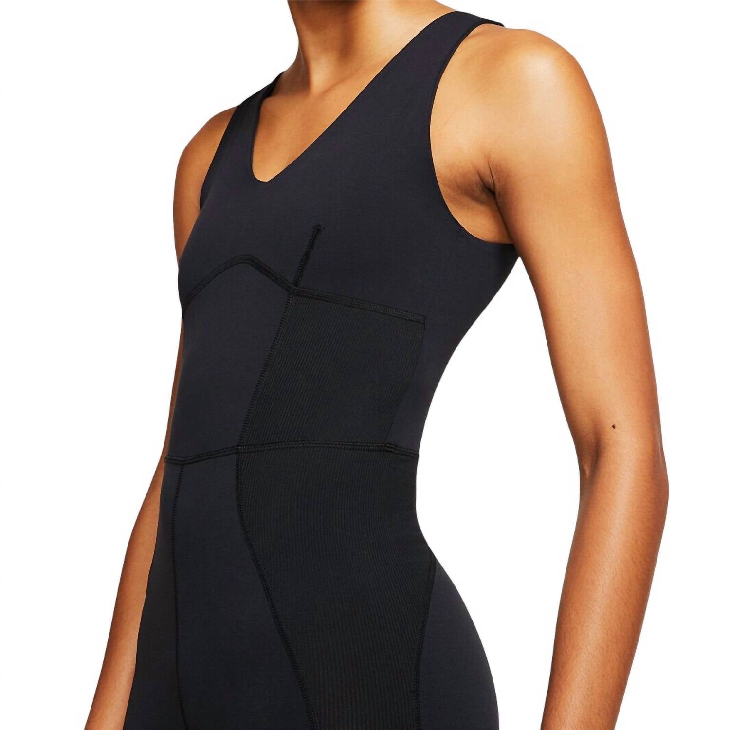 Ощутите максимальный комфорт и стиль с комбинезоном Yoga Luxe Infinalon от NIKE. Изготовленный из смеси 63% нейлона и 37% спандекса в основной части и 100% полиэстера в подкладке ластовицы, этот комбинезон разработан для плотного облегания тела. Технология Dri-FIT гарантирует, что он остается потоотводящим и дышащим, идеально подходящим для активного ношения. С объемом груди 13,5", талии 11" и внутренним швом 25", он имеет узкие штанины 7,75". Уход очень прост с инструкциями по машинной стирке. Подходит для - женской спортивной одежды. Узор - однотонный. Цвет - черный.