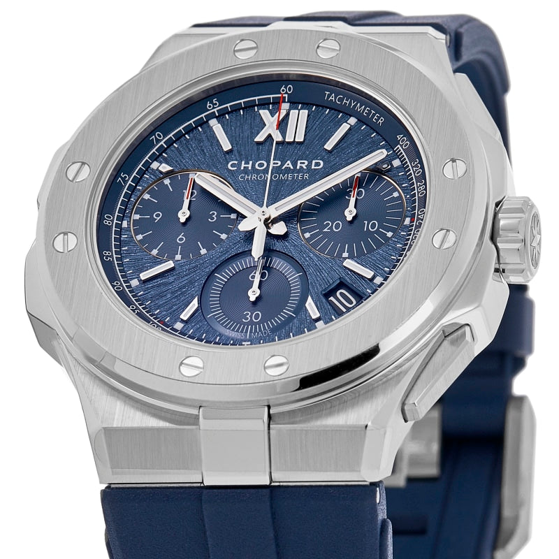 Совершенно новые подлинные мужские часы Chopard Alpine Eagle с синим циферблатом и каучуковым ремешком, модель 298609-3003. Корпус из нержавеющей стали с синим каучуковым ремешком. Застежка Tang. Фиксированный безель. Описание циферблата - серебристые стрелки и римские цифры/индексные часовые маркеры с минутными маркерами по внешнему ободу и 3 дополнительных циферблата с отображением даты между позициями 4 и 5 часов на синем циферблате. Автоматический механизм. Календарь - дата между позициями 4 и 5 часов. Отображение дополнительных циферблатов хронографа - малая секундная стрелка, 30 минут, 12 часов. Работают на двигателе Chopard 03.05-C с запасом хода 60 часов. Функции часов - дата, запас хода, часы, минуты, секунды. Завинчивающаяся заводная головка. Устойчивое к царапинам сапфировое стекло. Круглая форма корпуса. Размер корпуса - 44 мм. Прозрачная задняя крышка. Водонепроницаемость 100 метров - 330 футов. Гарантия WatchMaxx 2 года. Также известна как модель - 2986093003.