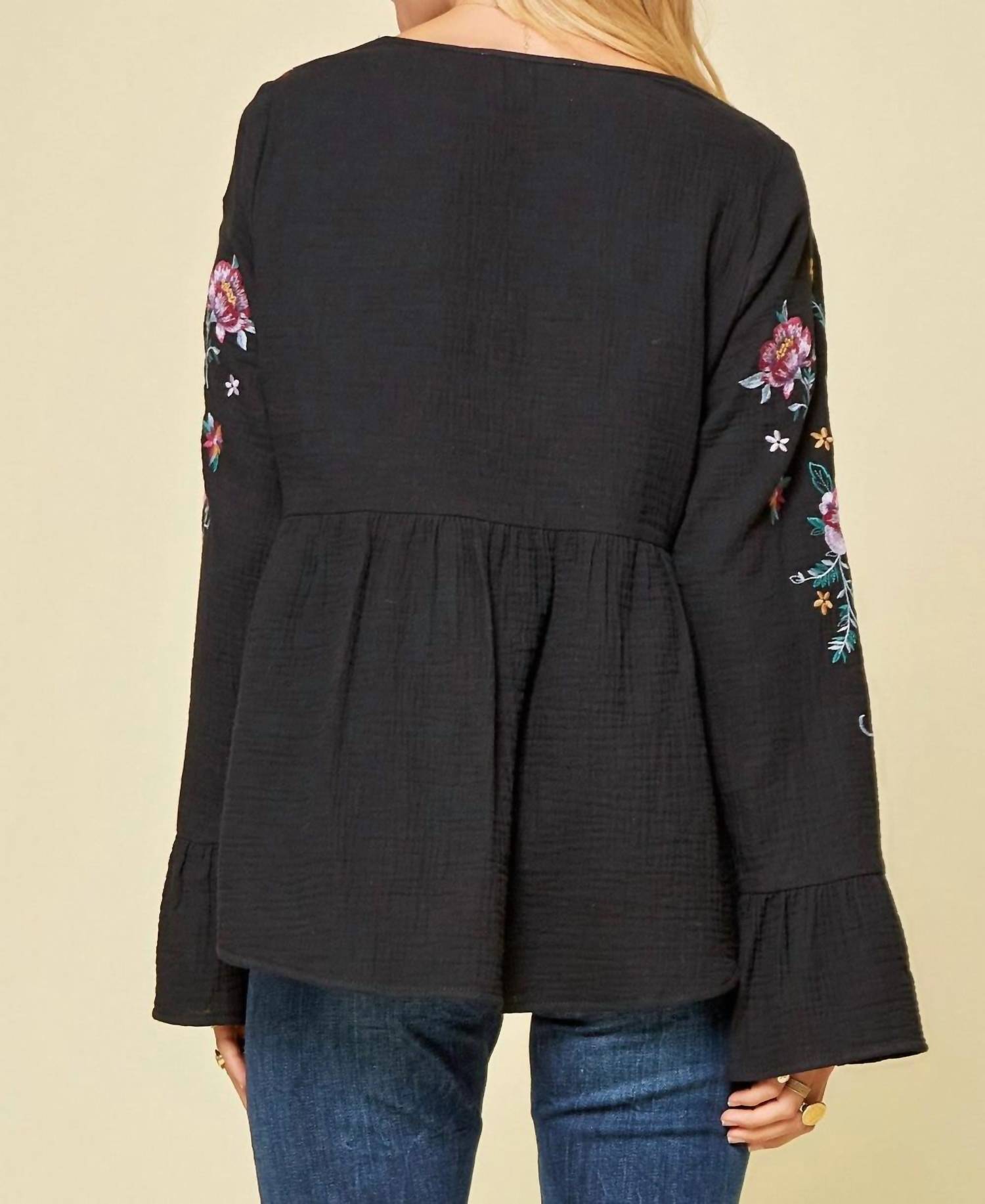 Круглый вырез, красочная цветочная вышивка, длинные расклешенные рукава и свободный силуэт бэби-долл А-силуэта. Маленький - бюст 38", длина 24". Средний - бюст 40", длина 24". Большой - бюст 42", длина 24". 1X - бюст 50", длина 27". 2X - бюст 52", длина 27". 3X - бюст 54", длина 27". 100% хлопковая марля, не растягивается, легкая. Ручная стирка в холодной воде.