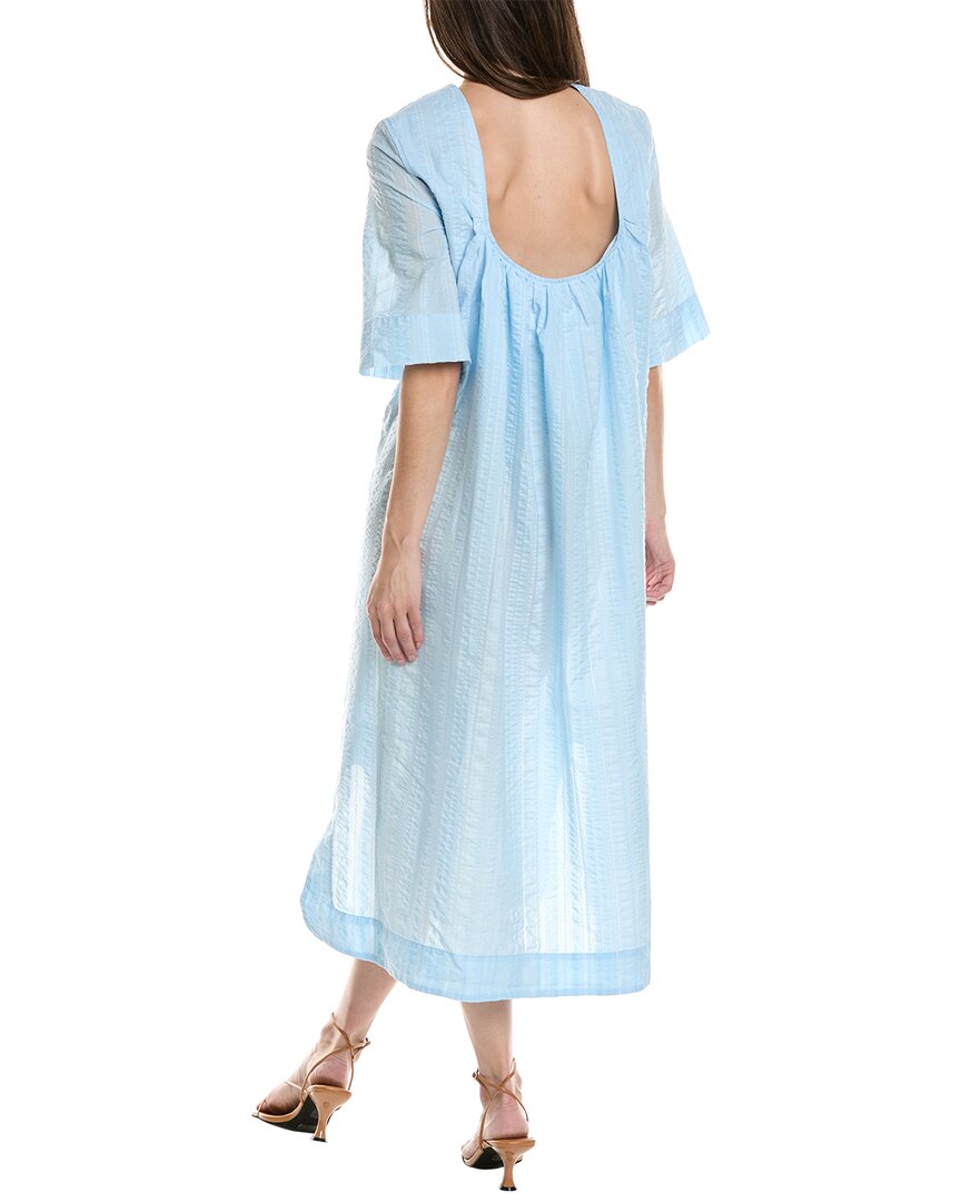 Платье макси в клетку GANNI из ткани сирсакер, синий