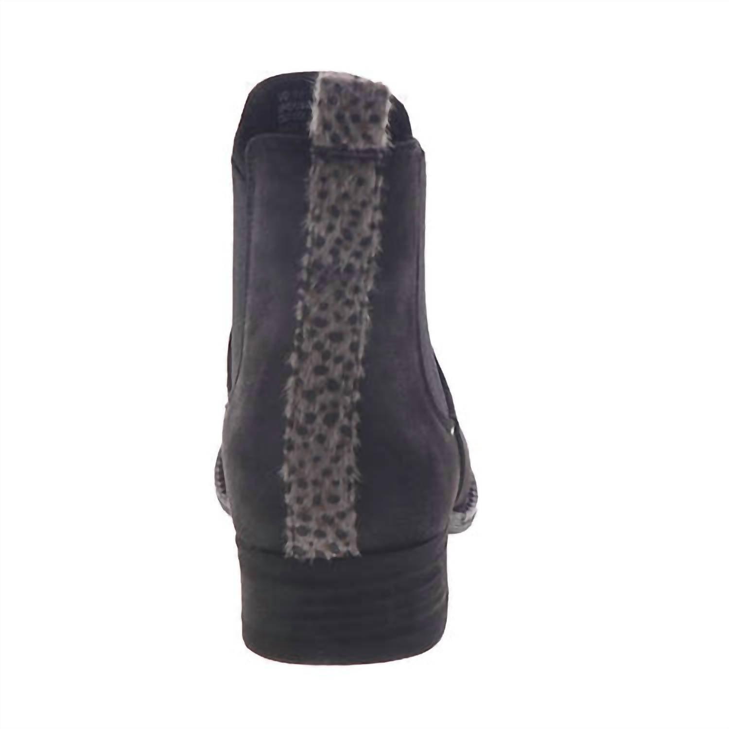 Эти ботинки имеют эластичные боковые панели и леопардовый принт сзади для дополнительного стиля. Они имеют синтетический верх, голенище до щиколотки и надеваемый фасон с бороздками по бокам для гибкой посадки. Слегка амортизированная стелька и каблук 1,75" обеспечивают комфорт и поддержку.