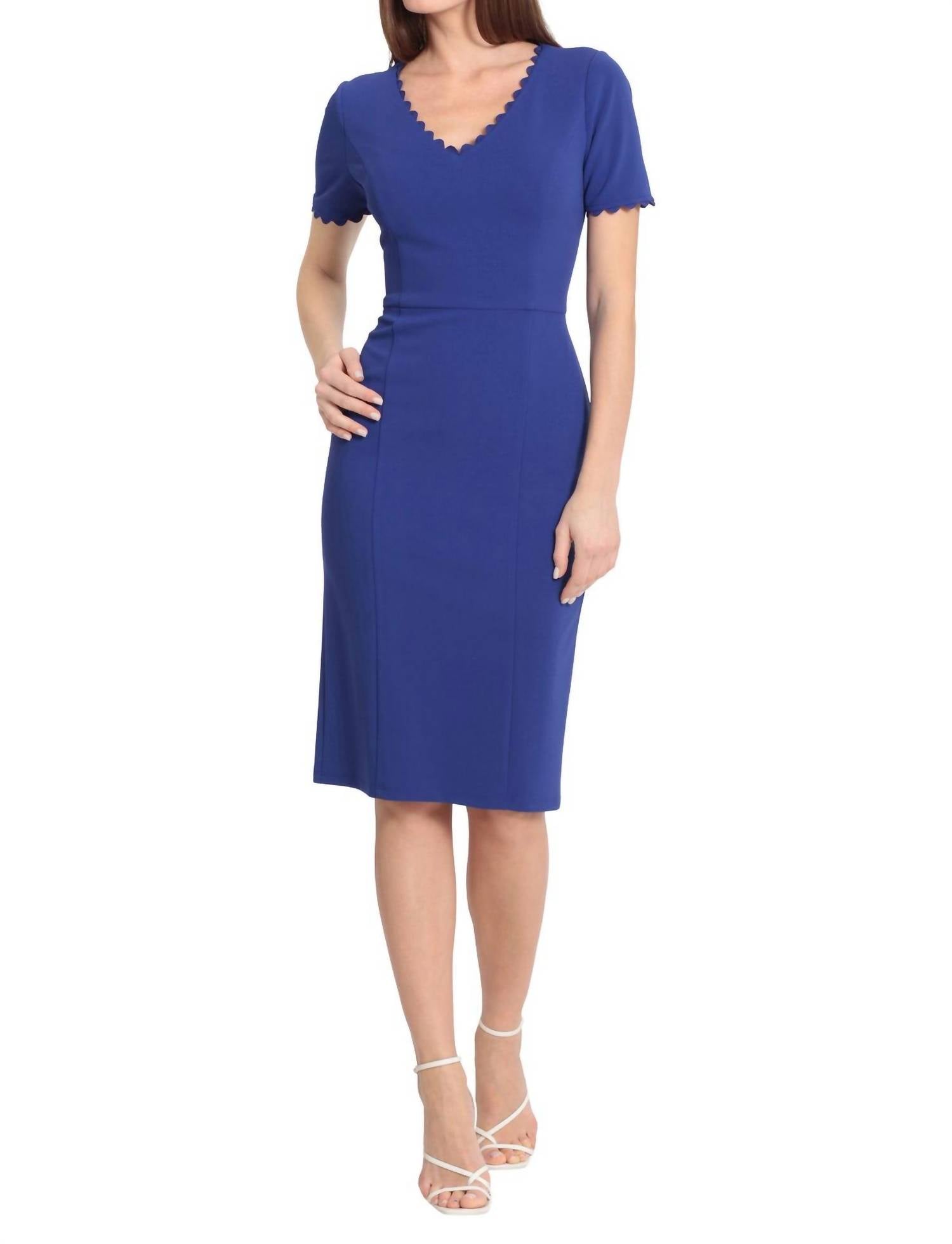 Просто добавьте шлепанцы или мюли, и все готово. Откройте для себя платье Catherina от Maggy London, выполненное в гладком цвете Clematis Blue для непринужденной элегантности. Это платье-футляр с короткими рукавами и зубчатым V-образным вырезом, что обеспечивает шикарный и современный вид. Оно изготовлено из крепа скуба с составом 96% полиэстера и 4% спандекса, полностью на подкладке, за исключением рукавов. Платье имеет длину миди 41,75 дюйма и застегивается на молнию для удобства ношения. Уход - Машинная стирка в холодной воде с похожими цветами, сушить на горизонтальной поверхности, не гладить и не подвергать химчистке.