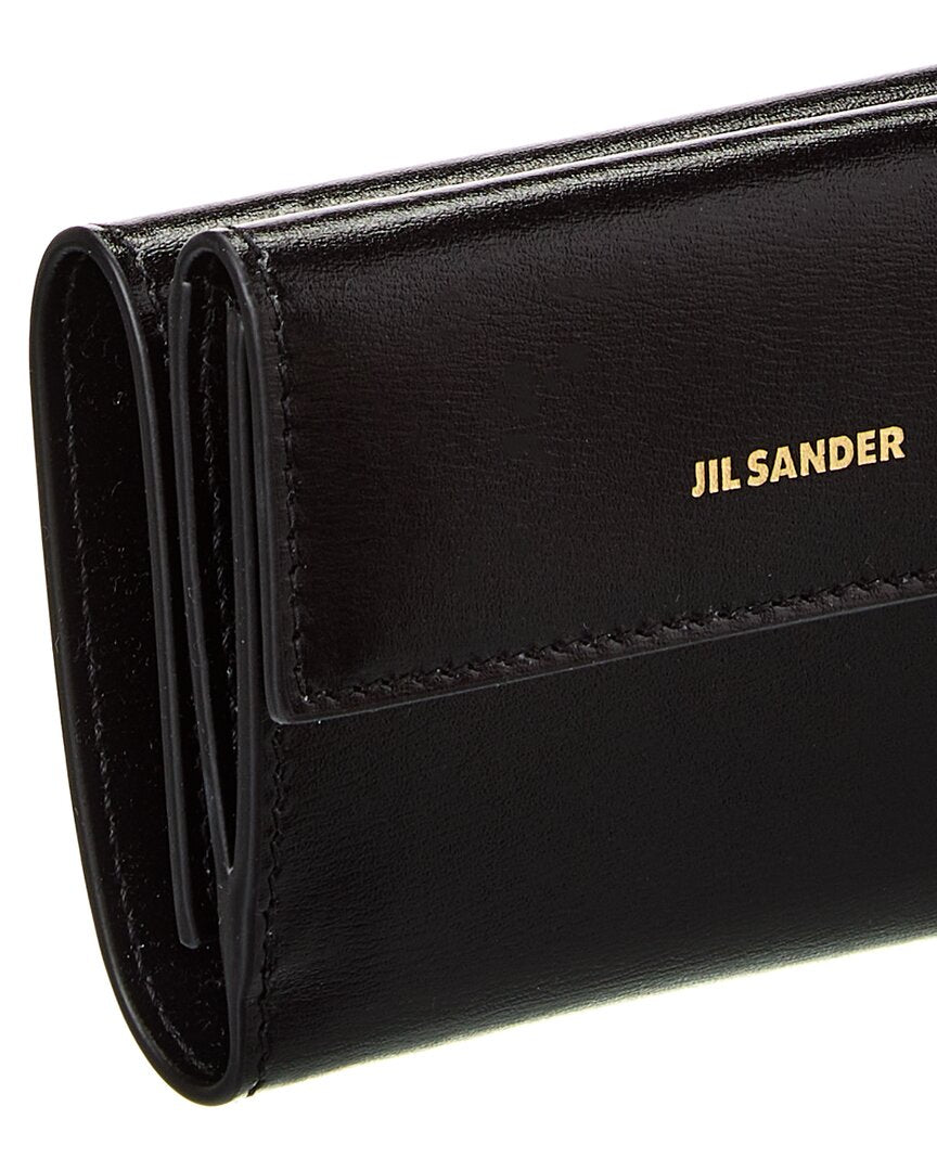Миниатюрный кожаный французский кошелек с логотипом Jil Sander, черный