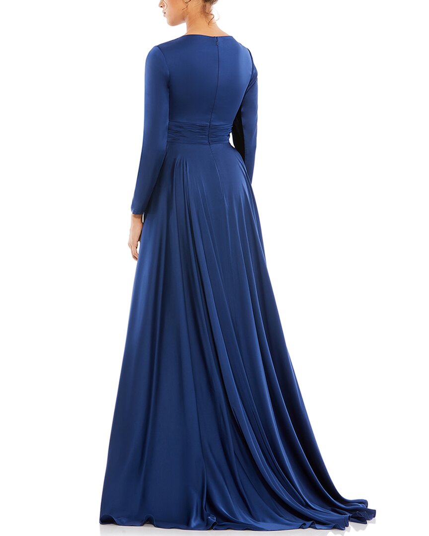 Платье А-силуэта Mac Duggal со сборками на талии, синий