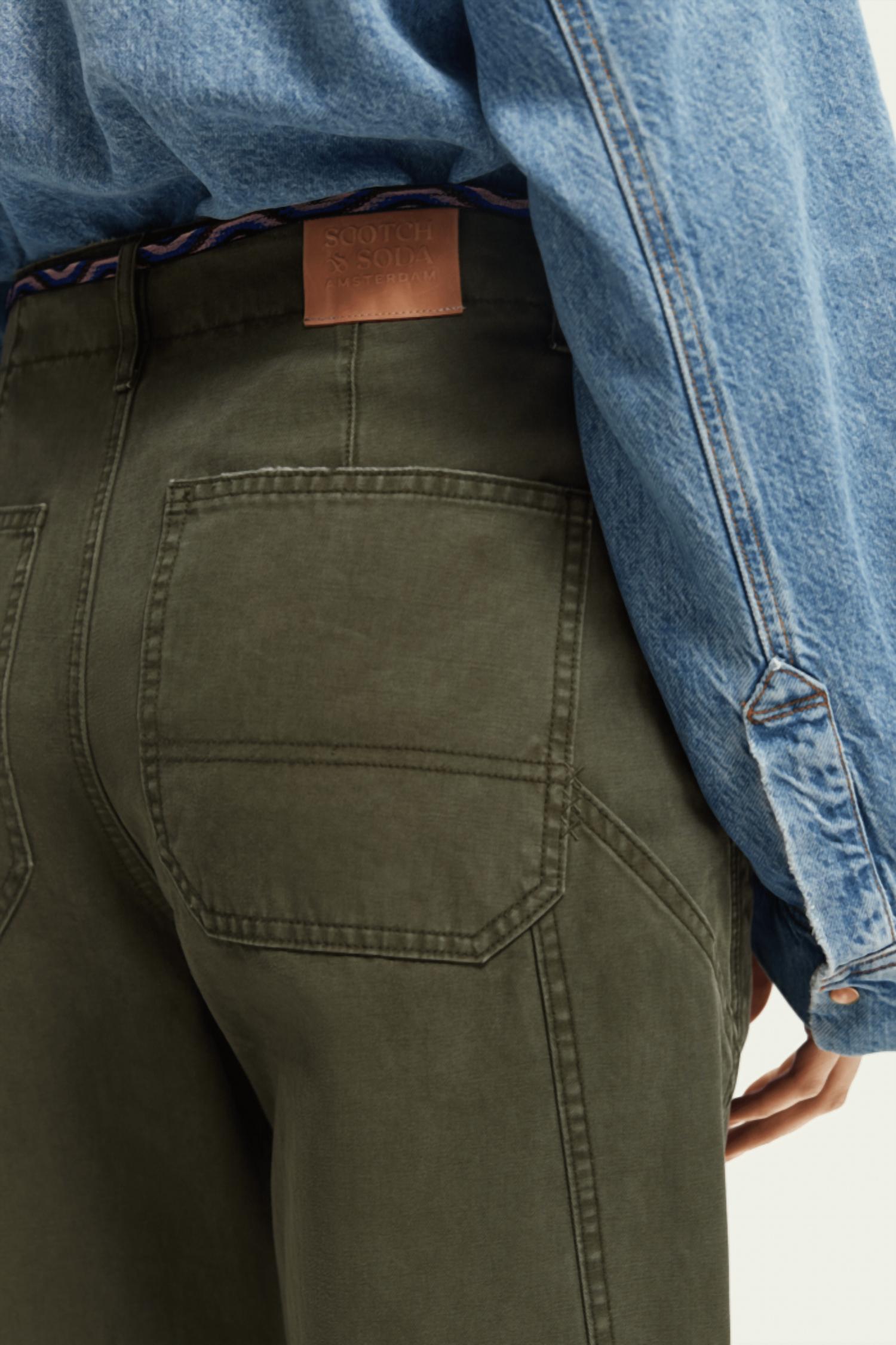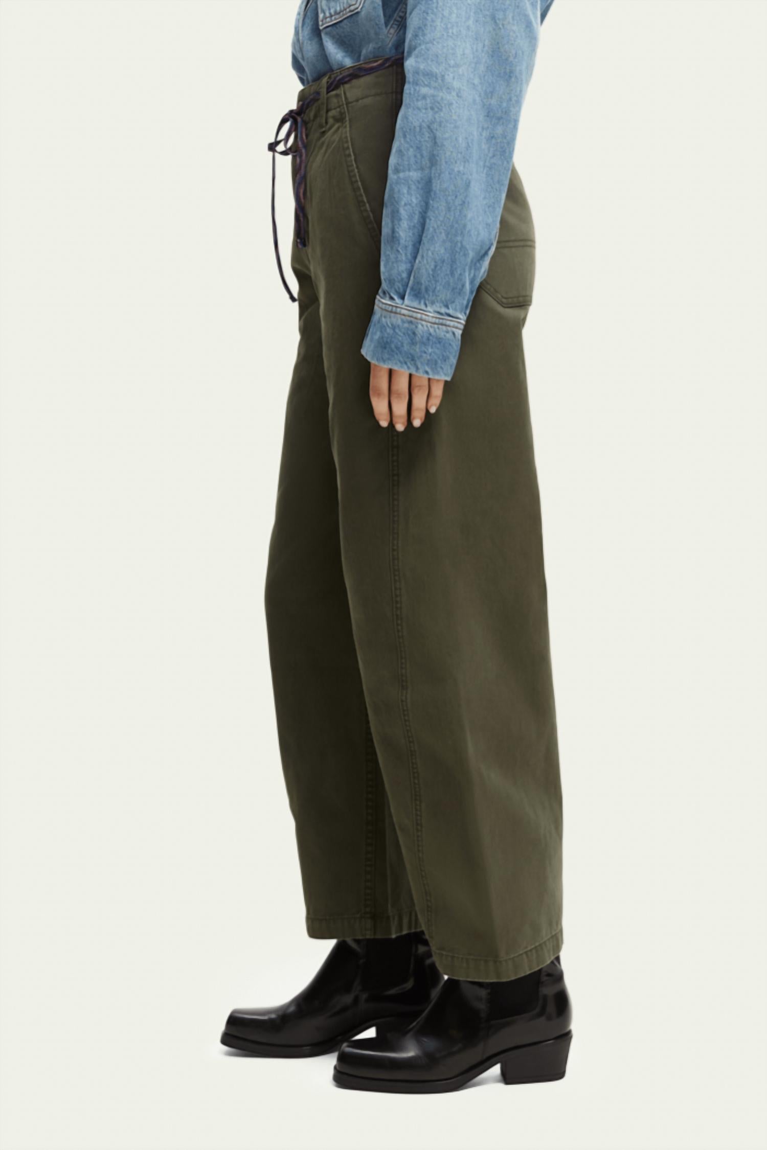 Современный крой, определяемый характерным кроем брюк-баллонов, изгибается на бедрах и коленях, а затем сужается к подолу. Завершенные увеличенными задними карманами, высокая талия сохраняет силуэт аккуратным, в то время как неэластичные ткани сохраняют форму. Женские брюки. Крой-баллон. Высокая посадка. Длина до щиколотки. Неэластичные. Застежка-молния. Деликатная стирка при 30 градусах. 100% хлопок - органический.