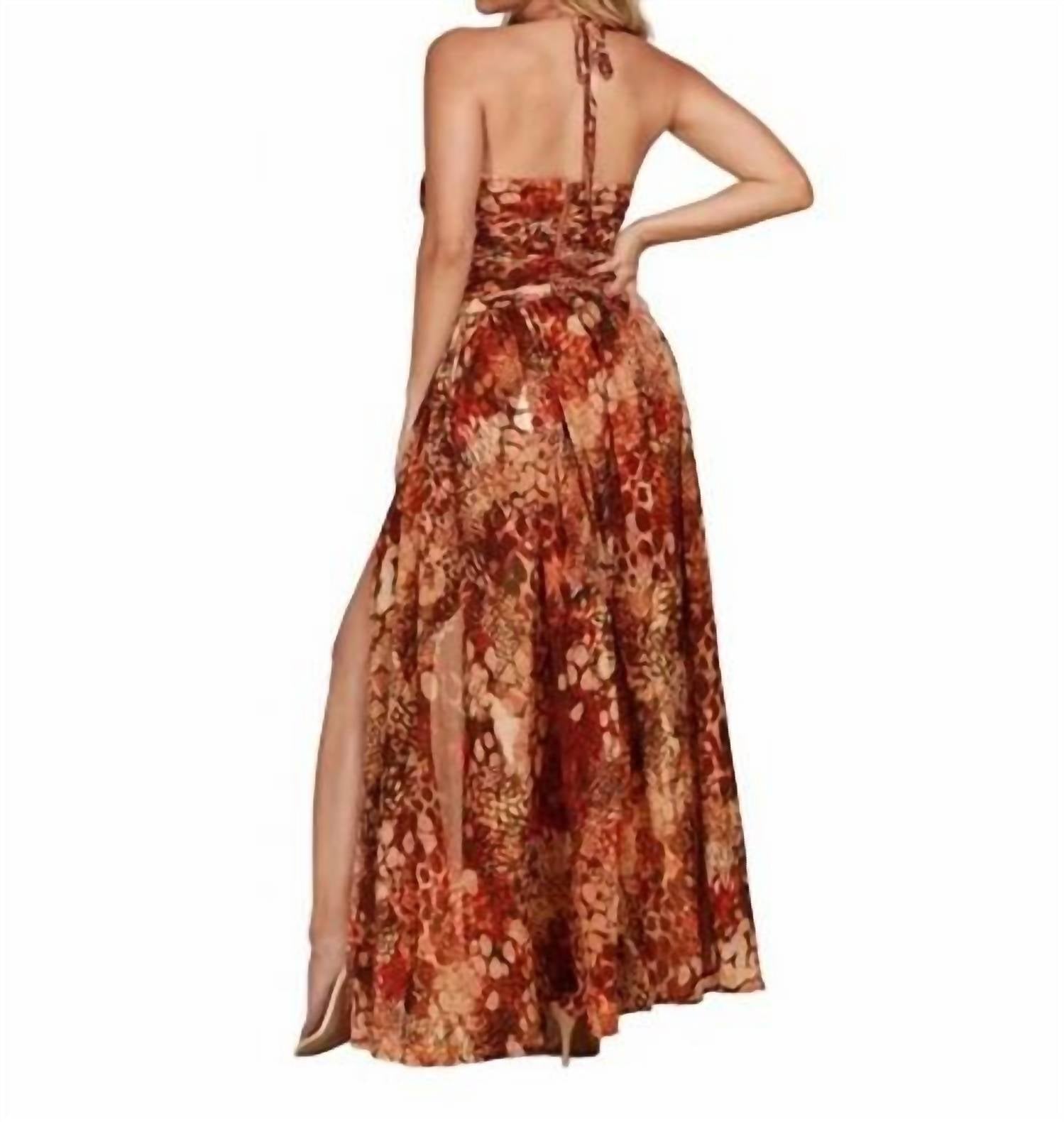 Платье-макси Fire Giraffe Resortwear в цвете Multi Brown L'ATISTE