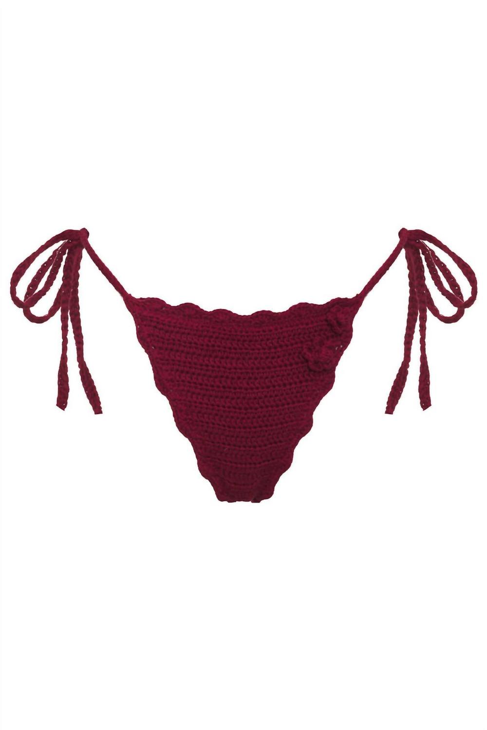 Мечтайте о своем следующем пляжном отдыхе в этом милом маленьком образе. Сочетайте с сандалиями на ремешках, мягкой шляпой и большой сумкой-тоут, чтобы завершить идеальный отпускной образ. Откройте для себя Mackenzie Crochet Bottom от Frankies Bikinis, предлагающий дерзкое покрытие в роскошном рубиновом оттенке. Изготовленный из ультрамягкой льняной смеси, этот бикини состоит из 55% льна и 45% хлопка, связанного крючком. Изящные завязки по бокам обеспечивают идеальную посадку для каждого дня на пляже. Полностью на подкладке для дополнительного комфорта, этот предмет действительно воплощает элегантный стиль купальника.