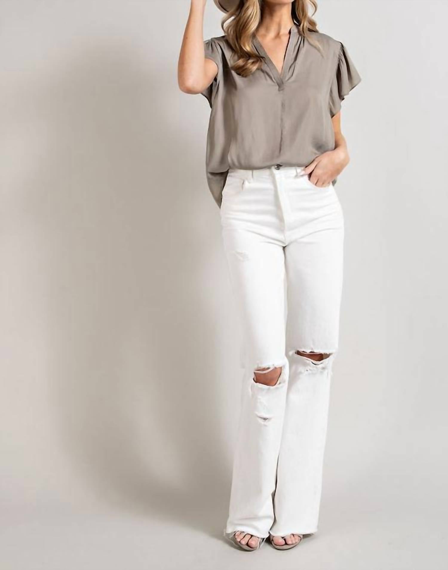 Сочетайте это с любимыми джинсами и шлепанцами для вашего следующего девичника. Усовершенствуйте свой гардероб с помощью атласной блузки с рукавами-крылышками от eesome в шикарном шалфейном оттенке. Эта блузка с короткими рукавами имеет привлекательный V-образный вырез и рукава-крылышки, что делает ее универсальной вещью для любого наряда. Изготовленная из 100% полиэстера, ее шелковистая текстура обеспечивает комфорт и стиль как для повседневных, так и для нарядных образов. Добавьте эту повторяющуюся вещь в свою коллекцию для легкого и мягкого дополнения, подходящего для сочетания с джинсами или шортами.