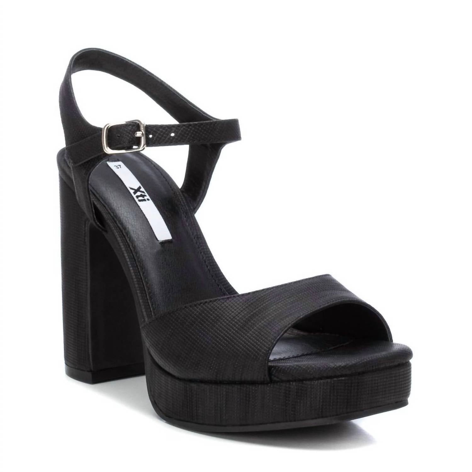Поднимите свой стиль с помощью женских черных босоножек на каблуке Xti. Эти босоножки сочетают в себе повседневное очарование и комфорт, а гладкий каблук высотой 4,33 дюйма придает модный вид. Ремешок элегантно выполнен с шикарной металлической пряжкой, что добавляет изысканности любому наряду. С нескользящей резиновой подошвой они обеспечивают устойчивость и уверенность при каждом шаге. Будь то вечерний выход или повседневный образ, обувь Xti обеспечивает непринужденный стиль и неподвластную времени элегантность.