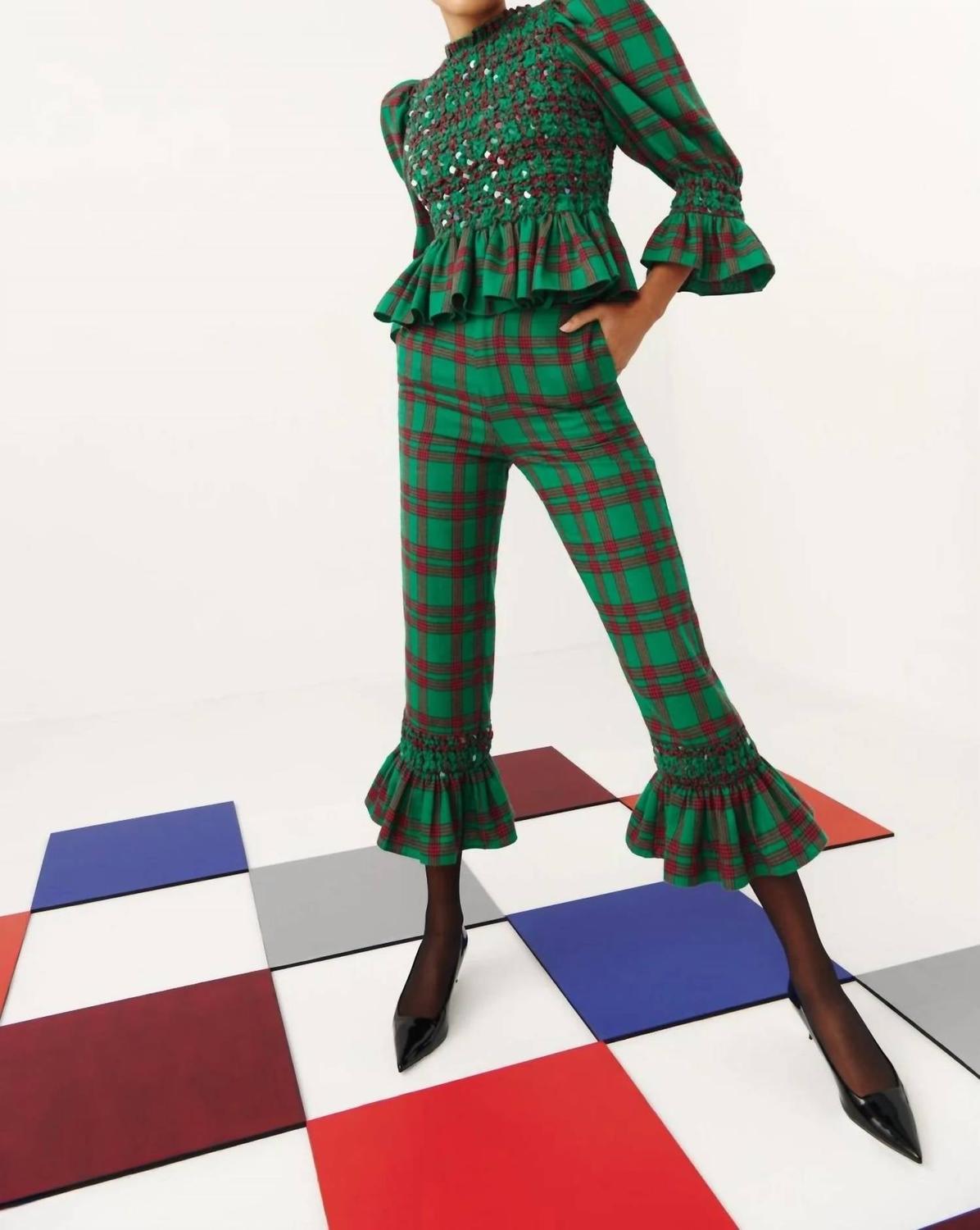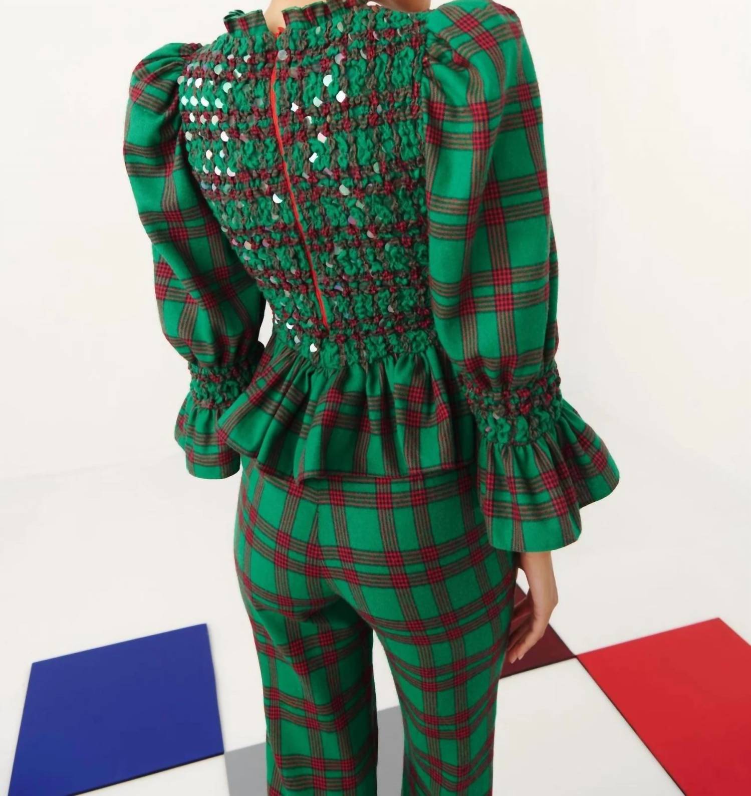 Представляем топ Leyland от CELIA B, пленительное сочетание очарования и стиля. Эта блузка демонстрирует насыщенный зелено-красный клетчатый узор с замысловатыми сборками и нежными деталями из пайеток для уникальной текстуры. Состав - 80% хлопок, 17% полиэстер, 3% спандекс с подкладкой из 87% нейлона, 13% спандекса. Инструкции по уходу - ручная стирка в холодной воде отдельно, сушить на горизонтальной поверхности, не гладить и не отбеливать. Детали рукава - буфы. Подол - оборка. Вырез горловины - высокий. На модели размер XS. Размеры - рост - рост - 178 см / 5 футов 10 дюймов, бюст - 84 см / 33 дюйма, талия - 65 см / 25,5 дюйма, бедра - 91 см / 36 дюймов