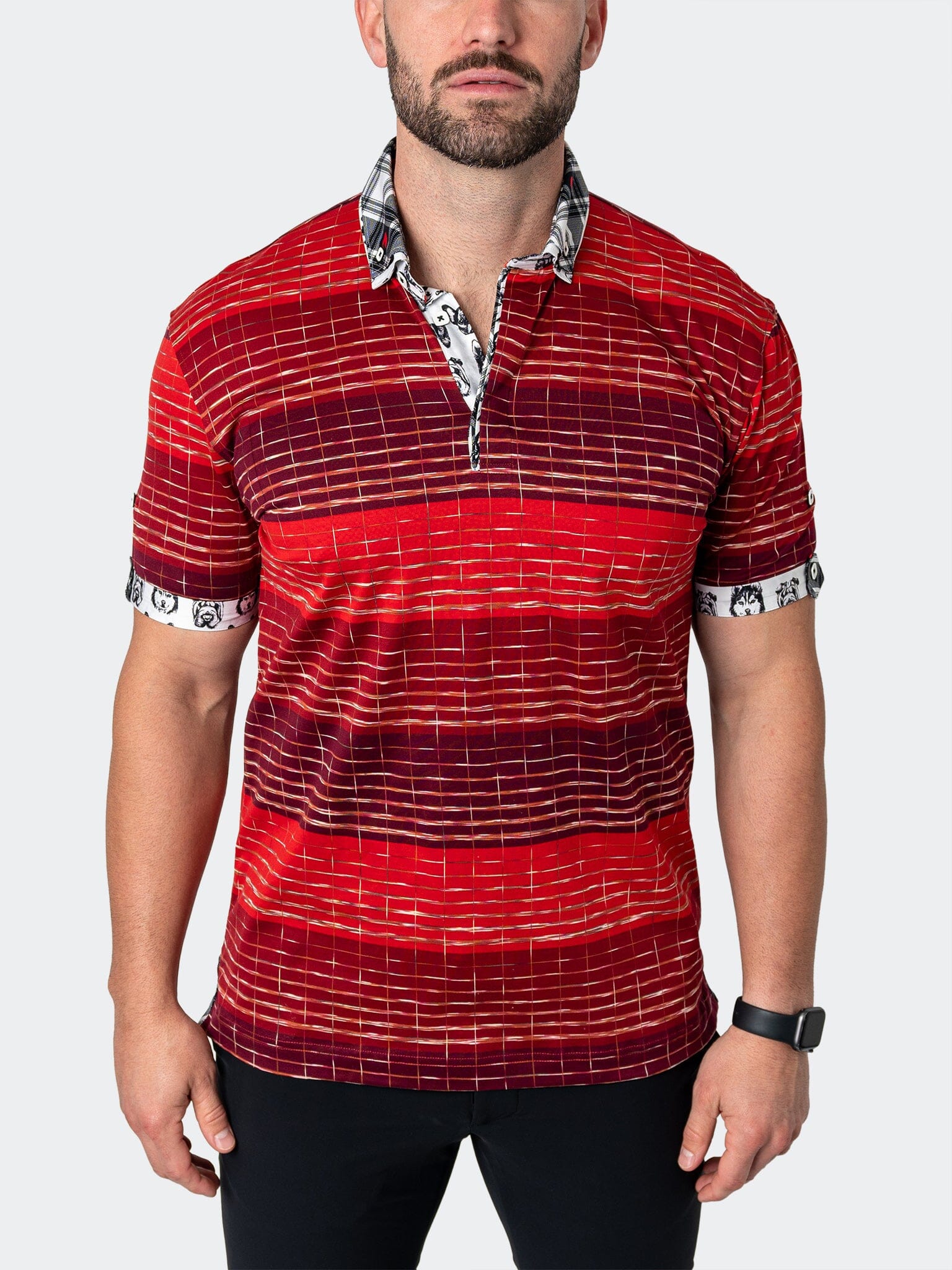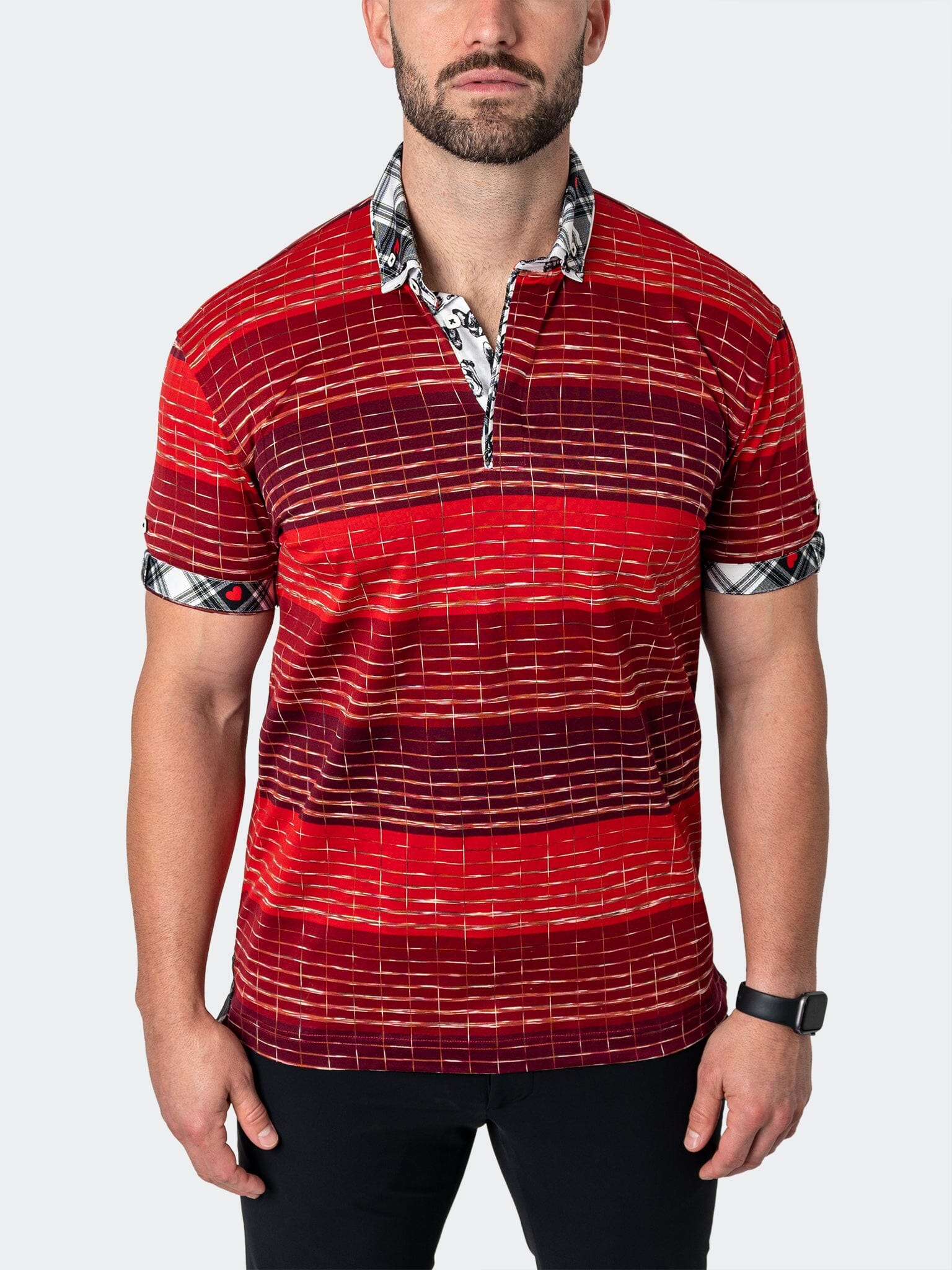 Эта рубашка поло с коротким рукавом от MACEOO изготовлена ​​из эластичной хлопковой сетки и имеет жесткий воротник рубашки и двусторонний рукав с пуговицами. Эта современная рубашка поло обеспечивает максимальный изысканный комфорт. Поло от Maceoo добавит всплеск текстуры к любому образу. Украшенный пятнистым принтом, этот современный топ обязательно выделится в ваших повседневных делах. Этот элегантный топ обязательно станет постоянным гостем вашего образа на выходные. Сочетайте его с бомбером, и вы всегда будете в стильном образе.