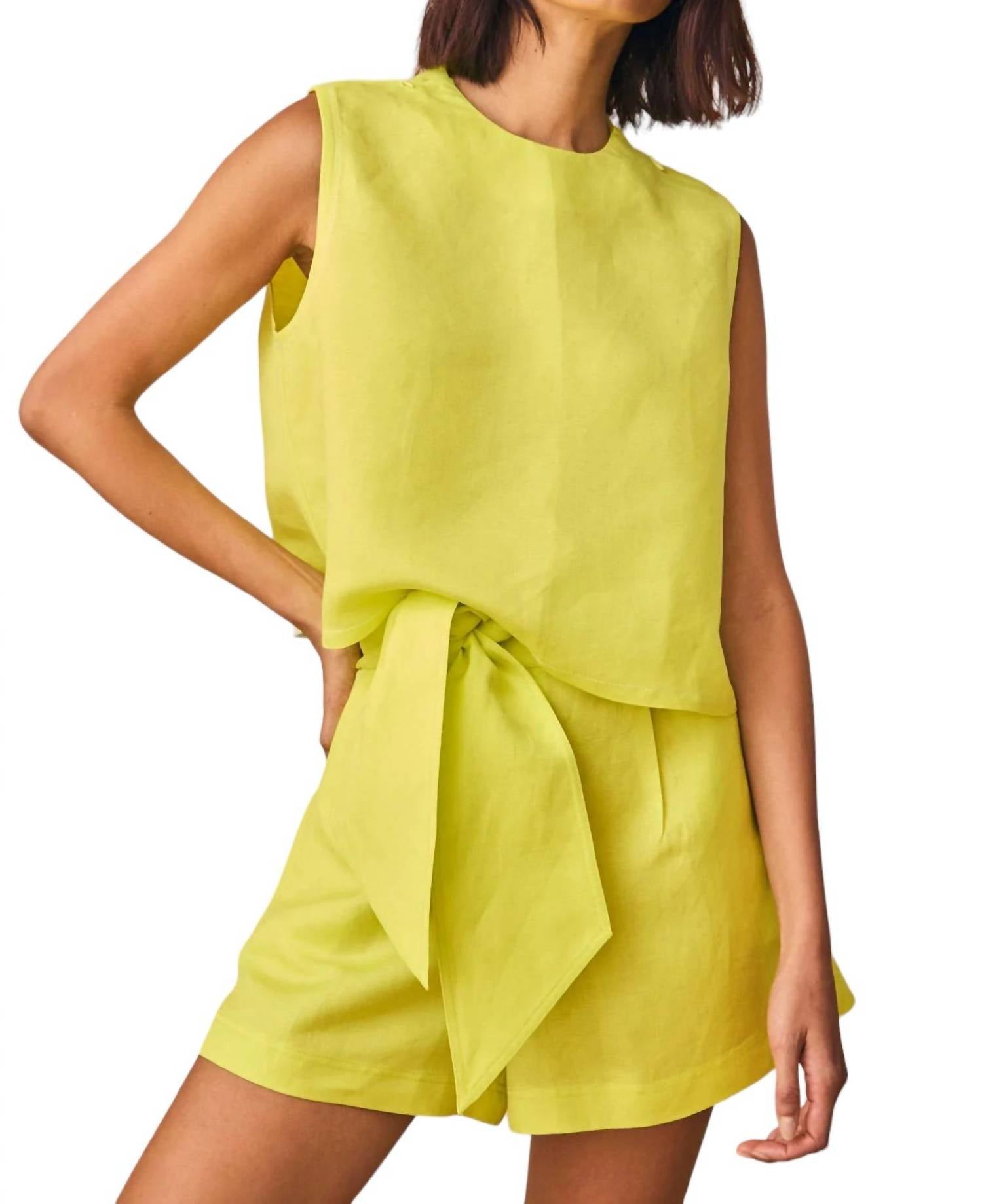 Льняные шорты цвета лайма — идеальное сочетание комфорта и стиля. Талия с поясом и элегантные передние складки. Изготовлены с косыми передними карманами и прорезными задними карманами. Съемный пояс с петлями. Невидимая боковая молния с застежкой на крючок и глазок. Обеспечивает бесшовную посадку. Шорты с высокой талией. Изготовлены из роскошной смеси 54% льна и 46% вискозы. Обеспечивают как долговечность, так и воздухопроницаемость. Только химчистка для сохранения яркого оттенка и первозданного состояния.