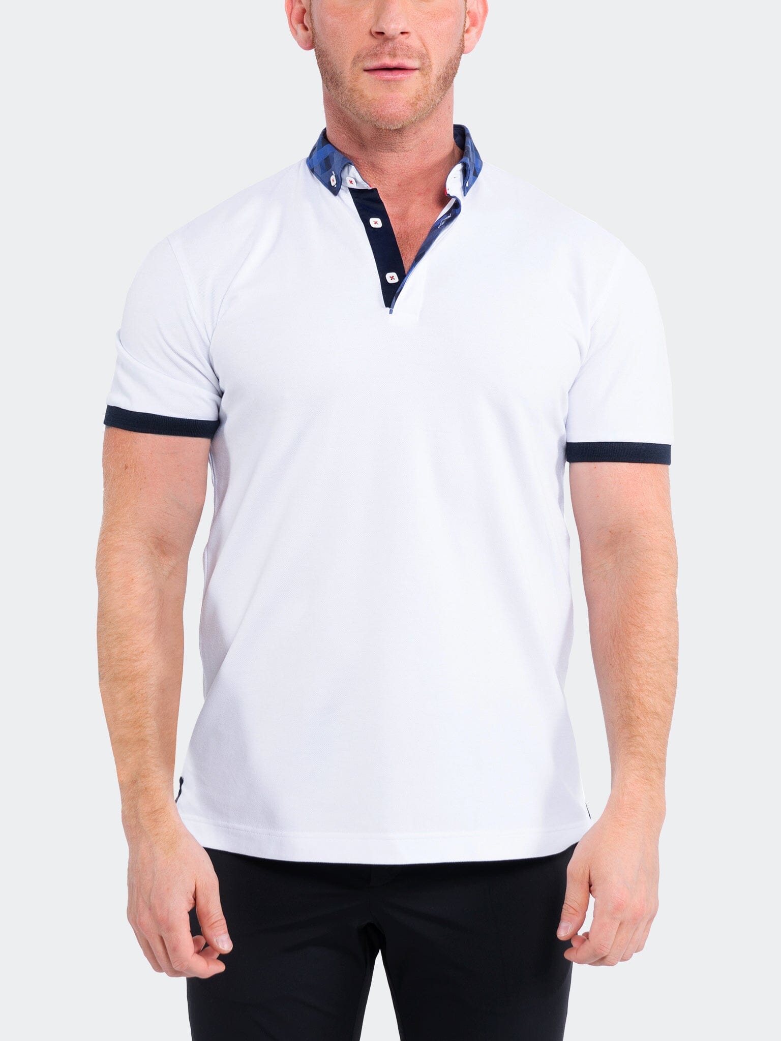 Эта рубашка поло с коротким рукавом от MACEOO изготовлена ​​из эластичной хлопковой сетки и имеет жесткий воротник рубашки и двусторонний рукав с пуговицами. Эта современная рубашка поло обеспечивает максимальный изысканный комфорт. Поло от Maceoo добавит всплеск текстуры к любому образу. Украшенный пятнистым принтом, этот современный топ обязательно выделится в ваших повседневных делах. Этот элегантный топ обязательно станет постоянным гостем вашего образа на выходные. Сочетайте его с бомбером, и вы всегда будете в стильном образе.