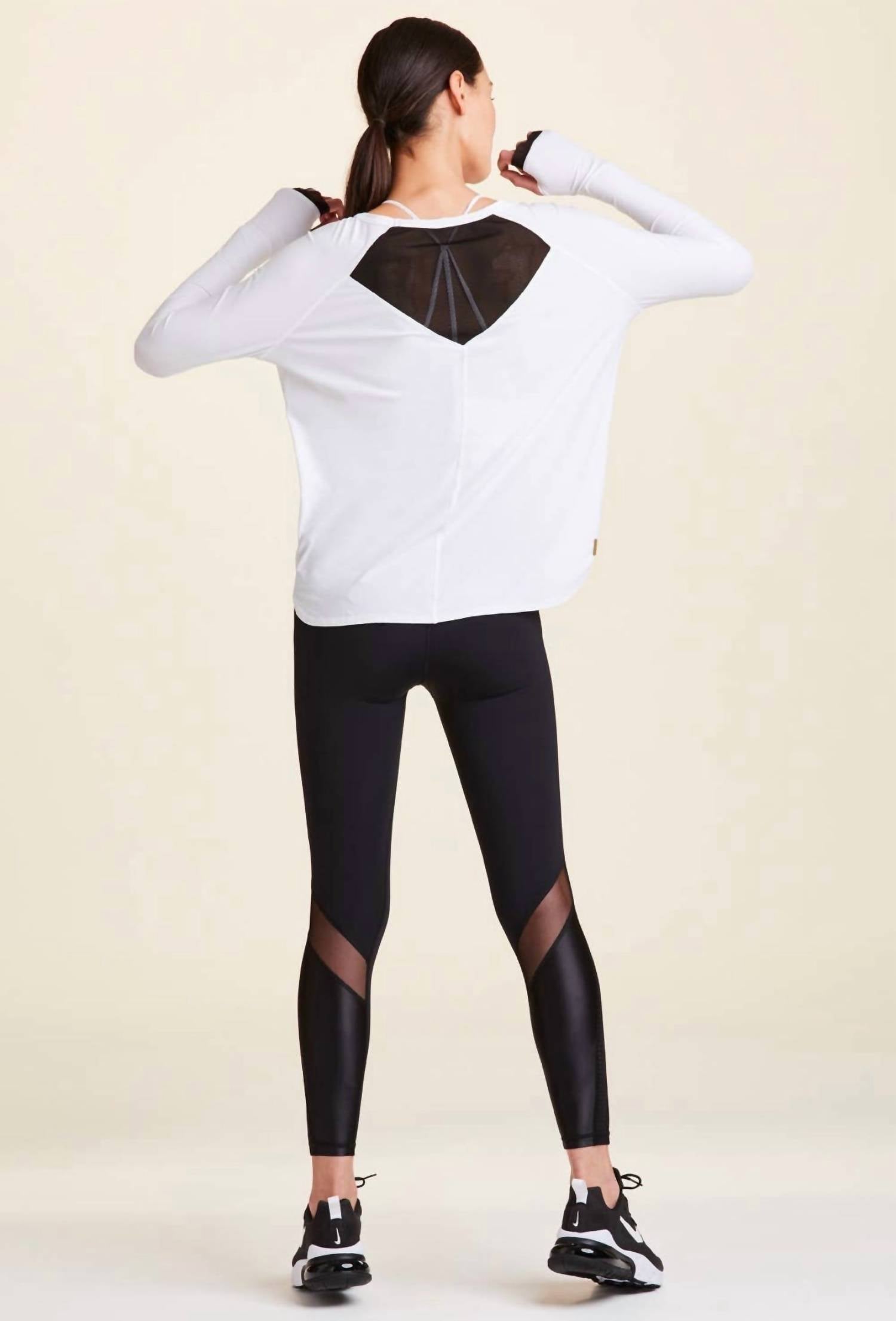 Рубашка реглан с длинными рукавами в стиле бойфренда с сетчатым акцентом на спине. Эта женская рубашка реглан обтекаемой формы на рукавах и свободный покрой по всему телу. Отверстия для больших пальцев. Быстросохнущая сверхлегкая ткань с начесом. 89% тактеля, 11% спандекса. Стирайте эту белую рубашку реглан с длинными рукавами в стиральной машине только в холодной воде с похожими цветами на щадящем режиме. Сушить в стиральной машине на низкой температуре или разложить на горизонтальной поверхности вдали от прямых солнечных лучей. Рост Кейли 5 футов 11 дюймов, обхват груди 30 дюймов, обхват талии 24 дюйма, обхват бедер 34 дюйма, на ней размер Small.