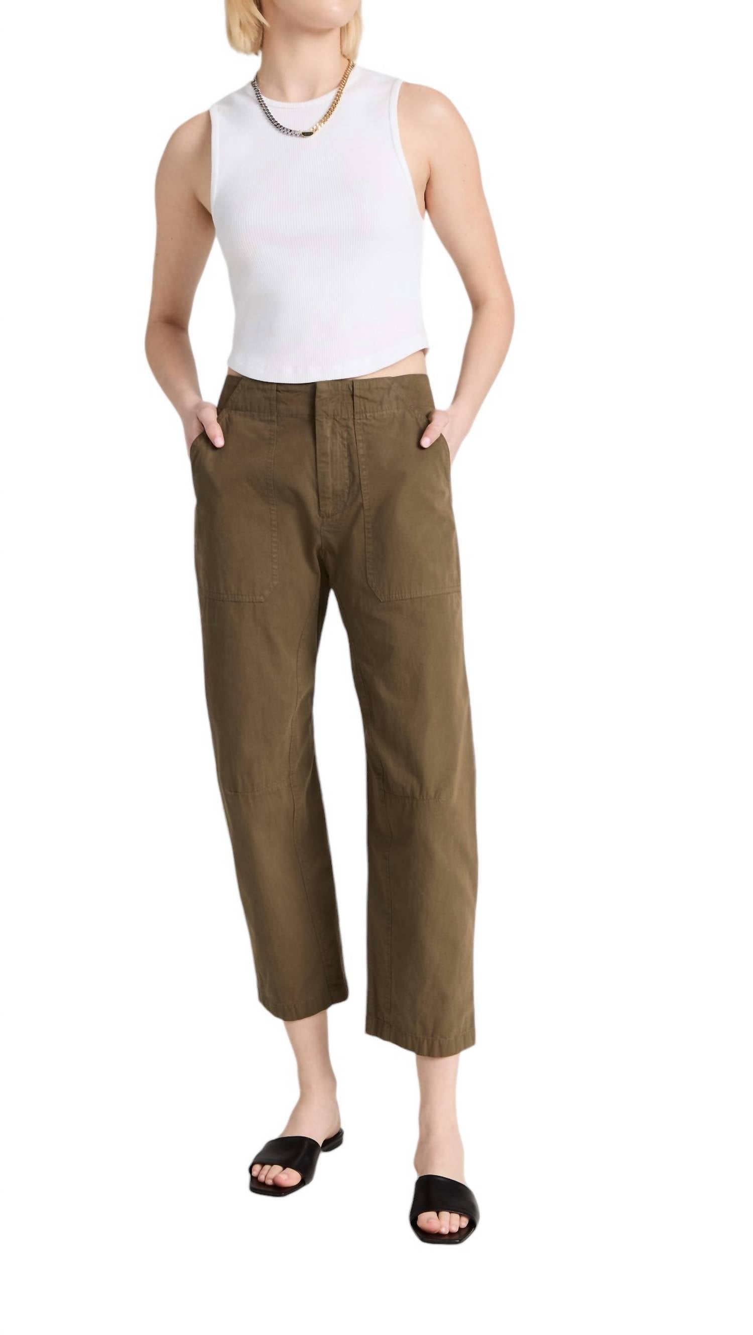 Эти легкие брюки застегиваются на крючки и петли на талии и имеют удобную застежку-молнию для надежной посадки. Разработанные с накладными карманами на бедрах, они предлагают практичный и стильный штрих. Изготовленные из 100% хлопка в неэластичной ткани, эти брюки обеспечивают комфорт и воздухопроницаемость. Мерки от размера 0 включают подъем 9,75 дюймов, внутренний шов 26 дюймов и отверстие для брючин 14,25 дюймов. Эти брюки можно стирать в стиральной машине в холодной воде для легкого ухода, они станут универсальным дополнением к вашему гардеробу. Сделано во Вьетнаме.
