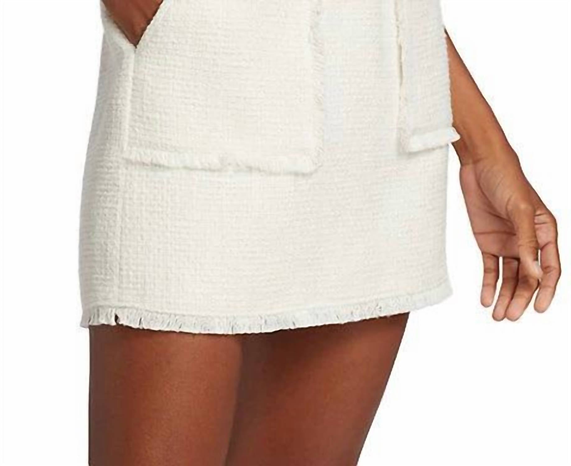 Мини-юбка Jaycie из трикотажа букле от Cinq à Sept из коллекции Tous Les Jours сочетает в себе элегантность с игривым оттенком. С поясом на талии и скрытой застежкой-молнией сбоку, она также включает в себя наклонные карманы на талии и отделку бахромой для дополнительного стиля. Модель надевается на застежку и подкладка из 100% полиэстера обеспечивают комфорт. Изготовлена из смеси 40% хлопка, 35% акрила, 23% полиэстера и 2% вискозы. Только сухая чистка.
