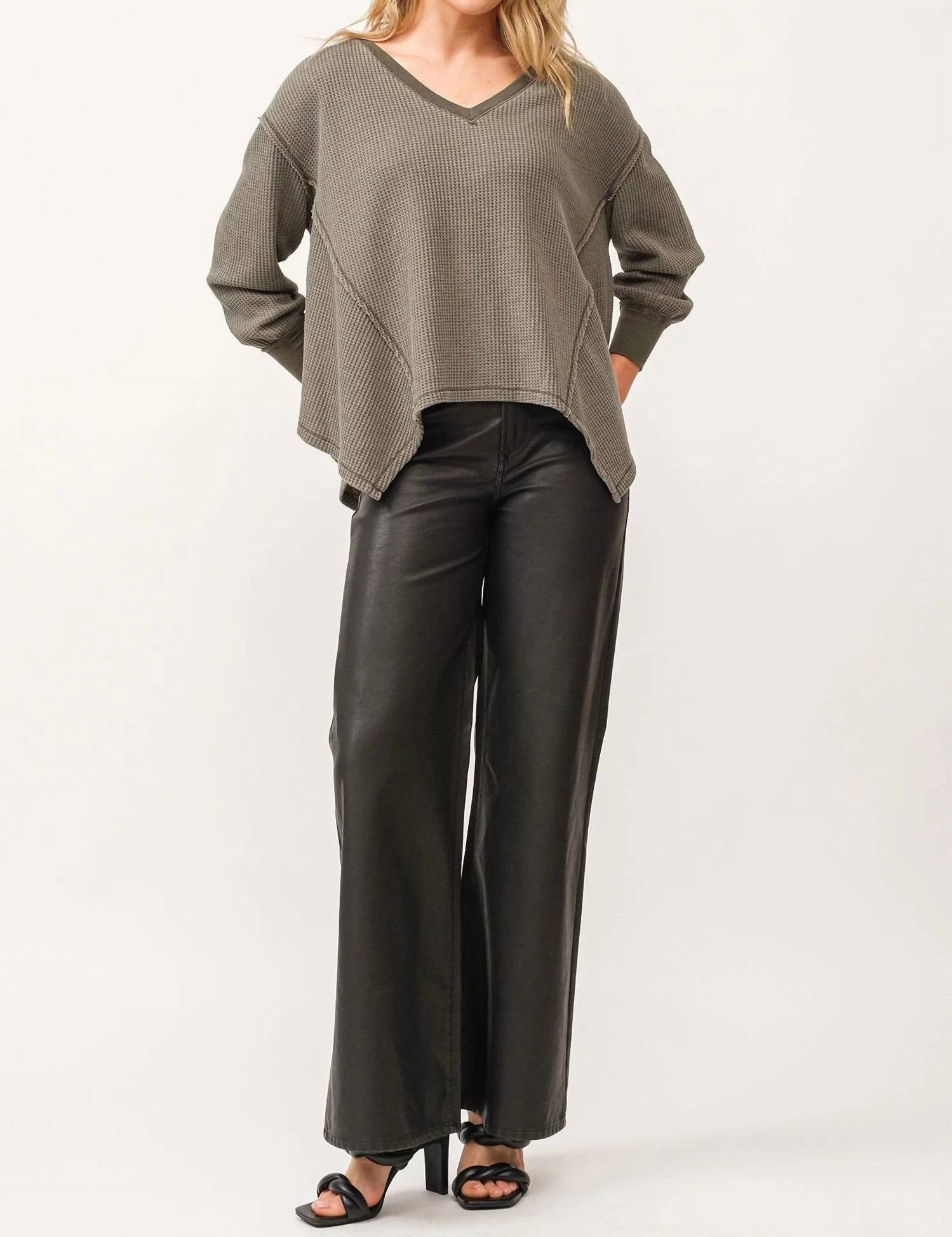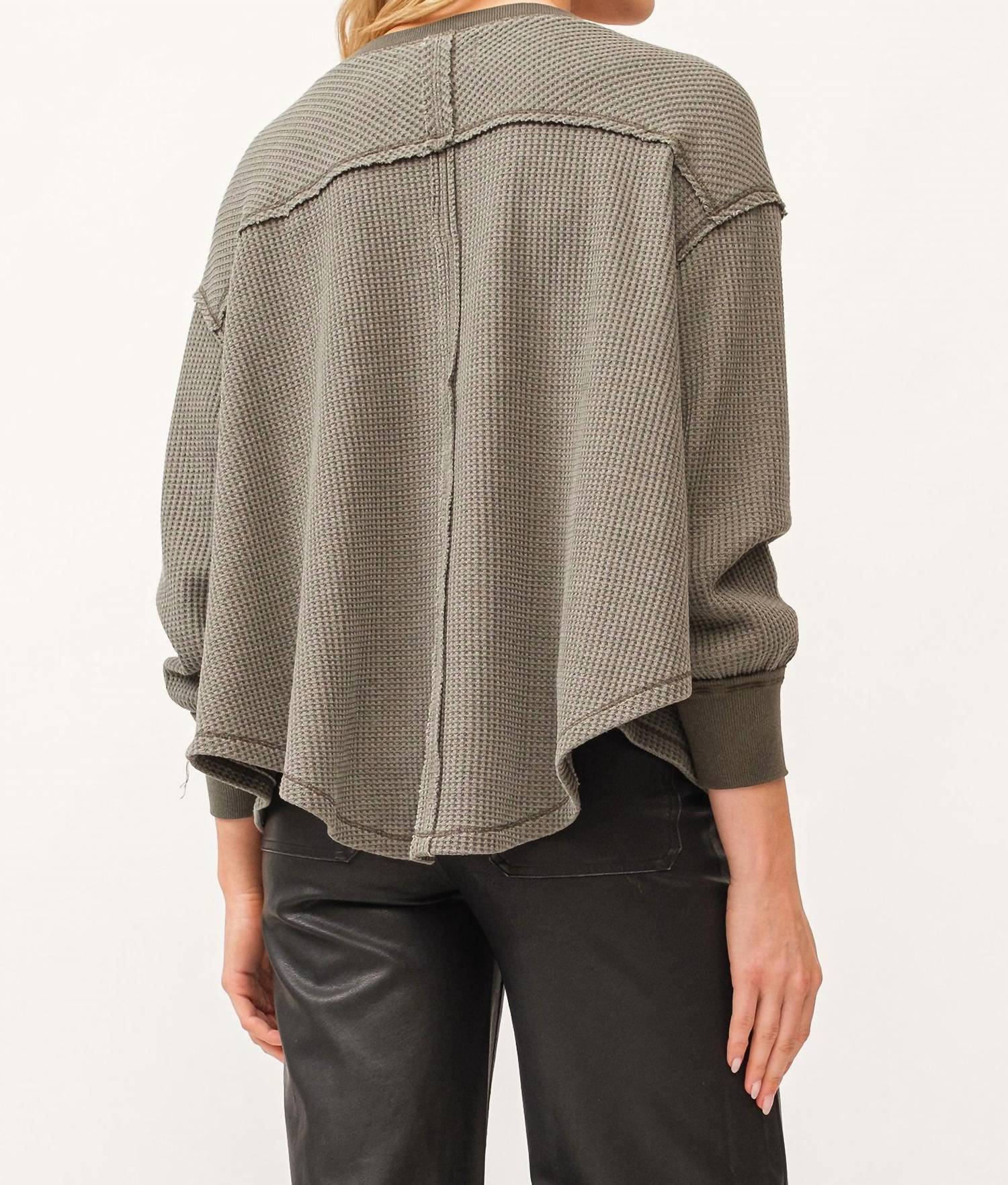 Универсальная блузка, которая подойдет и для работы, и для ужина! Откройте для себя топ Mira Oversized от DEAR JOHN DENIM, выполненный в насыщенном темно-оливковом цвете для максимального комфорта и универсальности. Эта блузка oversize с длинными рукавами имеет привлекательный V-образный вырез и необработанные швы. Она изготовлена ​​из смеси хлопка с 65% полиэстера и 35% хлопка, что обеспечивает мягкость и долговечность. Застежка - надевается. Уход - машинная стирка в холодной воде, сушка в стиральной машине при низкой температуре. Размеры для размера small - длина изделия 23,5", длина рукава 20", обхват груди 50".