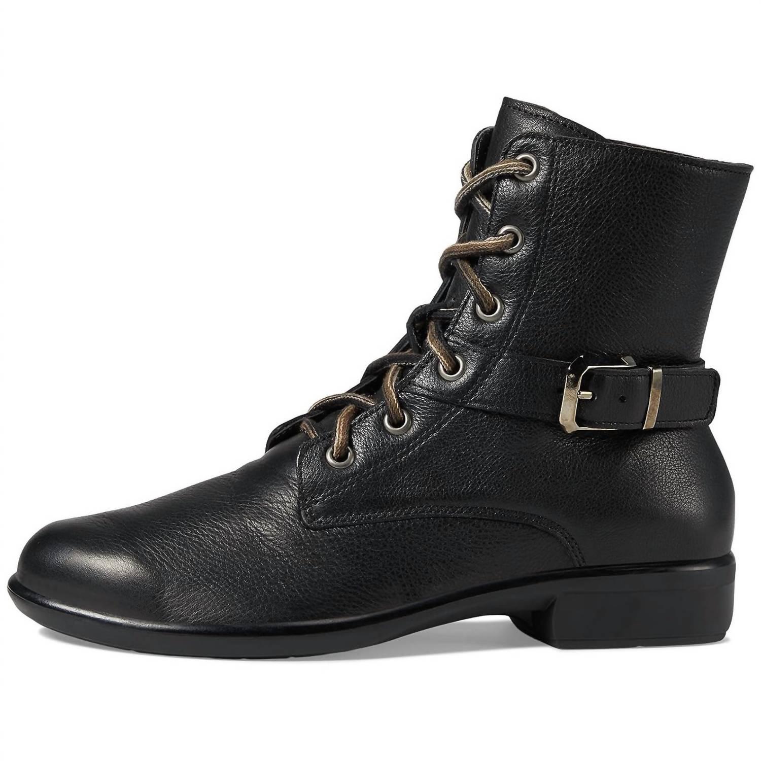 Ботинок оснащен боковой застежкой-молнией и искусственной пряжкой на липучке в сочетании с мягкой технической подкладкой для максимального комфорта и впитывания влаги. Он может похвастаться съемной анатомической пробковой и латексной стелькой, обернутой микрофиброй и кожей, что обеспечивает индивидуальную посадку с течением времени. Изготовленный с 1,5-дюймовой полиуретановой подошвой и металлическим стержнем, этот легкий ботинок обеспечивает отличную устойчивость к скольжению и гибкость. Эти ботинки соответствуют размеру и подходят для ортопедических изделий, обещают стиль без ущерба для комфорта.