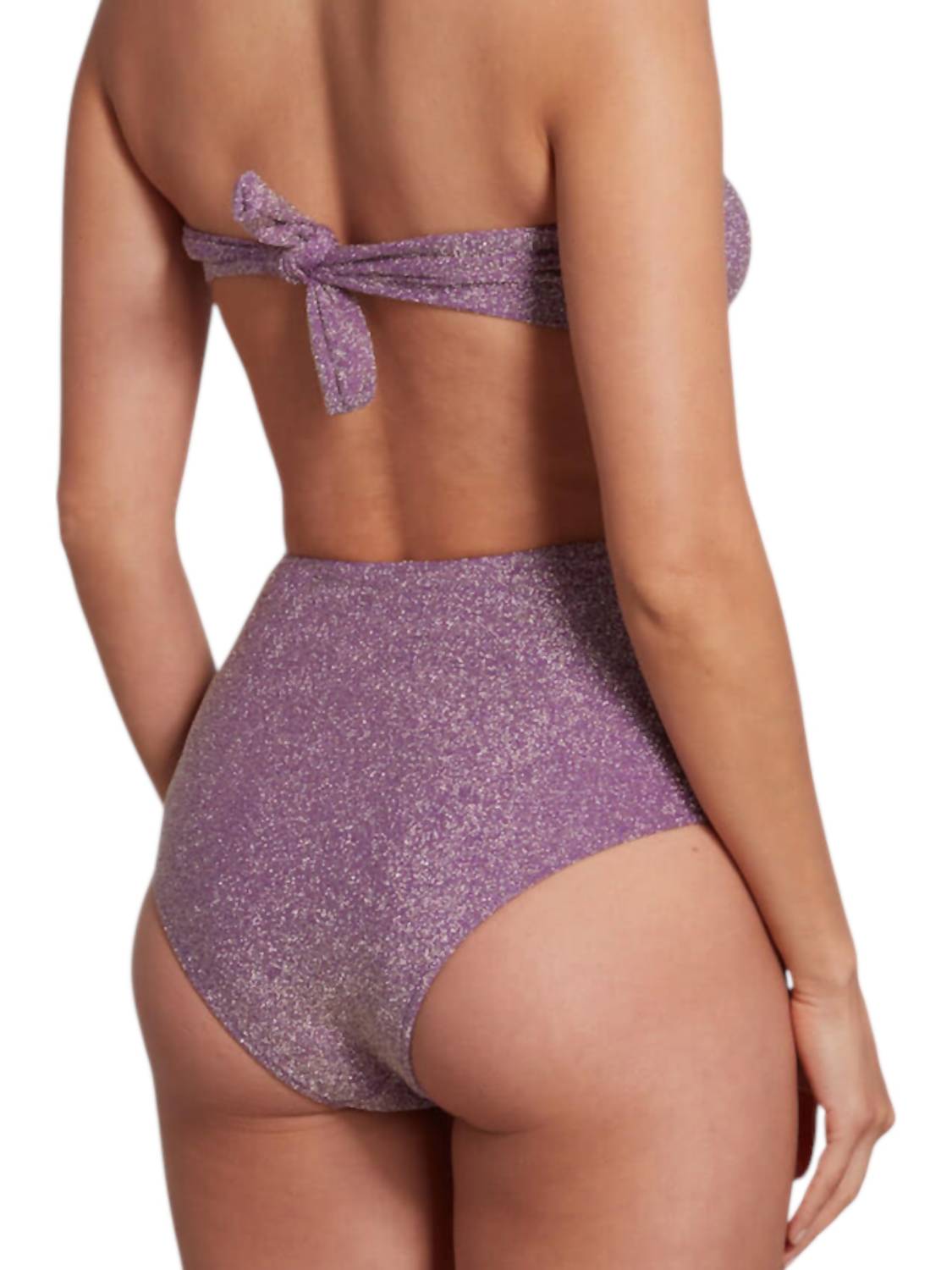 Модель имеет привлекательный дизайн с высокой талией и мерцающей отделкой, идеально подходящий для шикарного пляжного образа. Состав: 85% полиамида, 10% эластана и 5% металлизированного волокна; ручная стирка в холодной воде и сушка в горизонтальном положении.