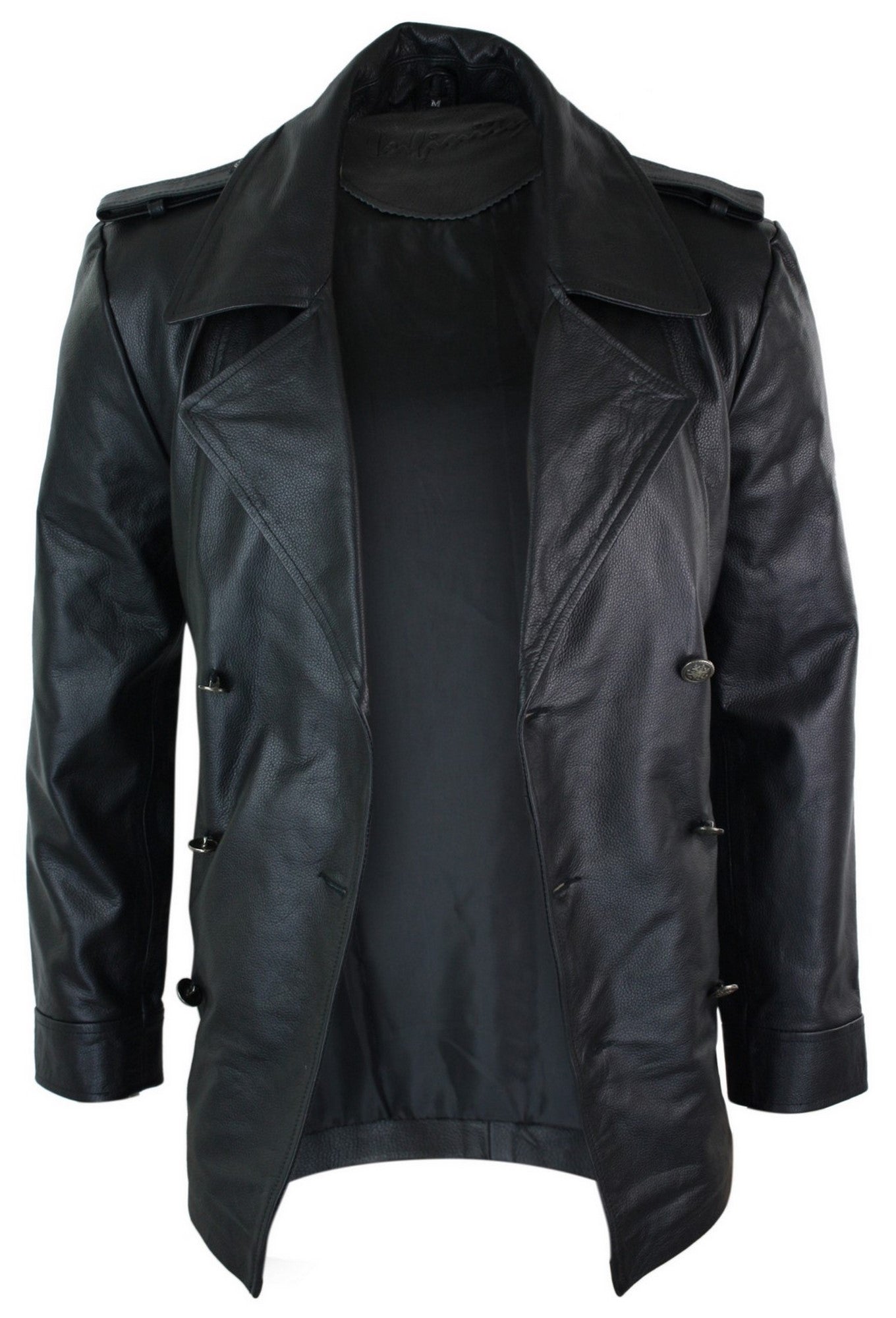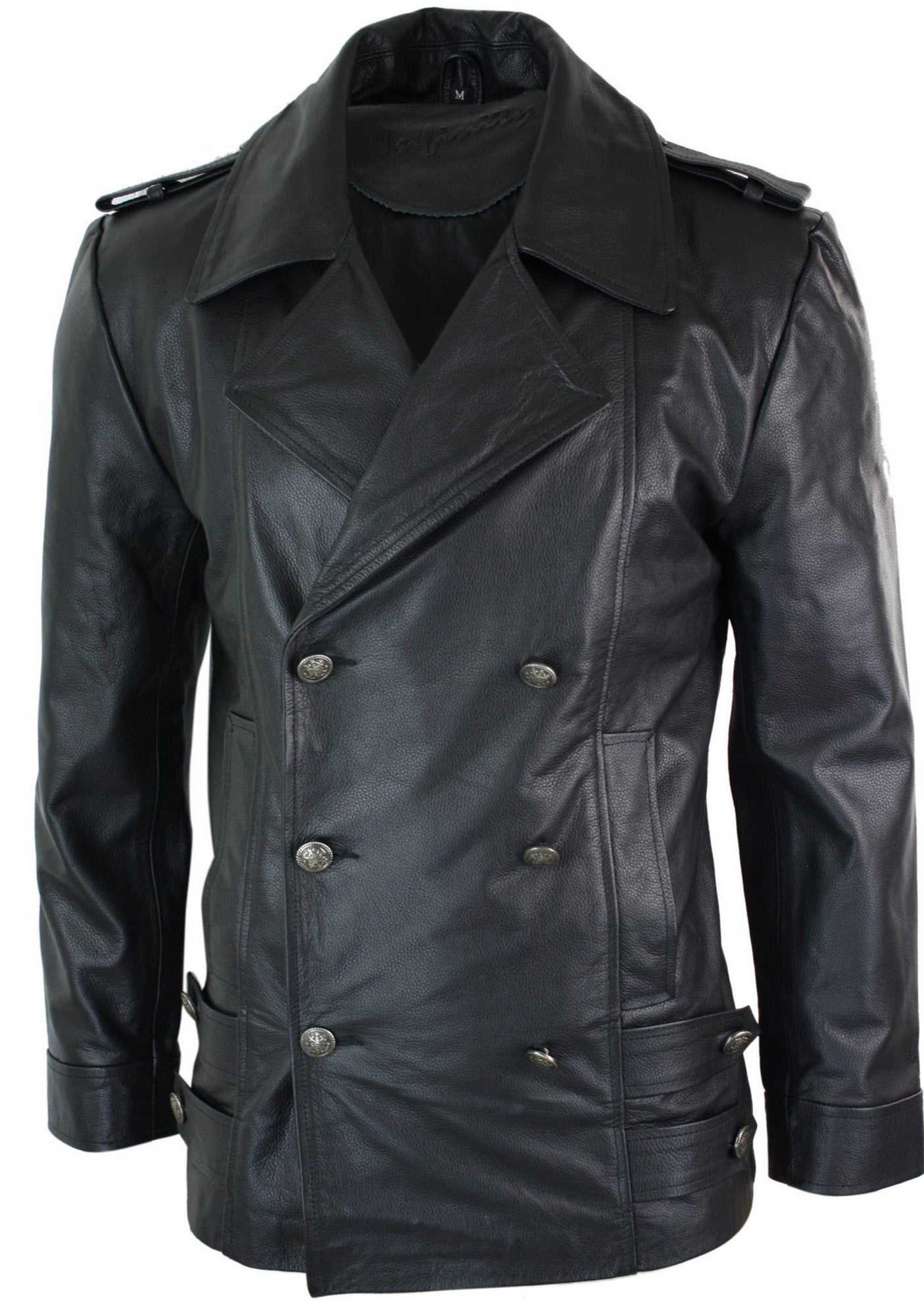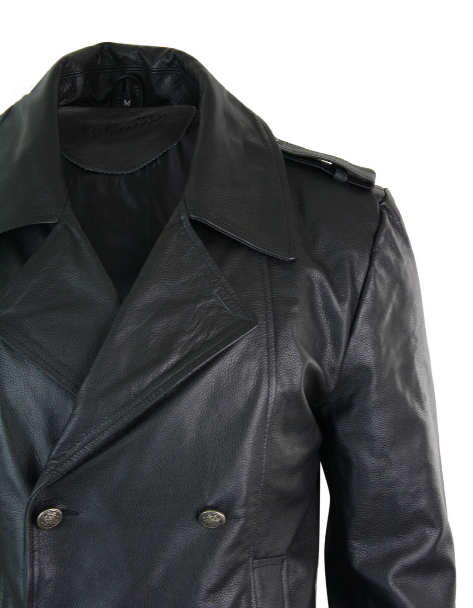 Двубортное кожаное пальто немецких моряков TruClothing, черный 25 863₽